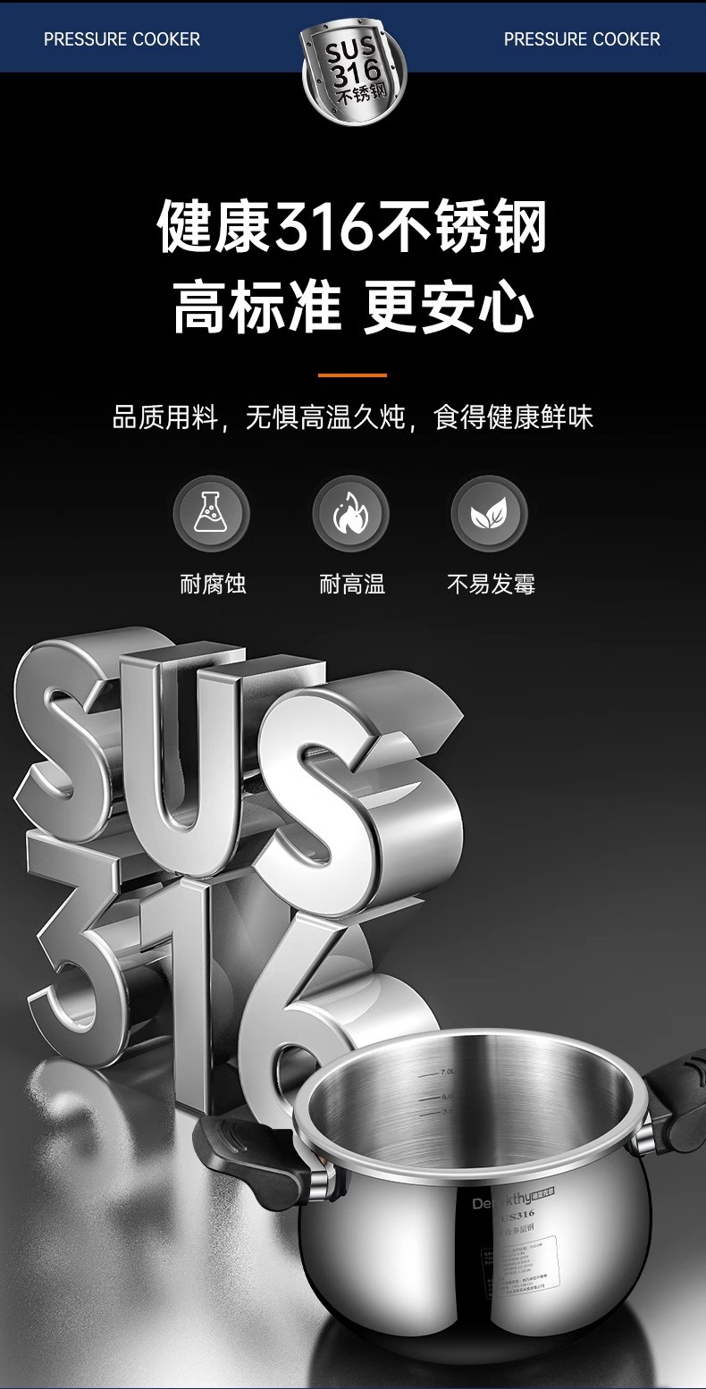 ドイツ高圧鍋家庭用316ステンレス規格品公式旗艦店は防爆大容量圧力鍋が小さい