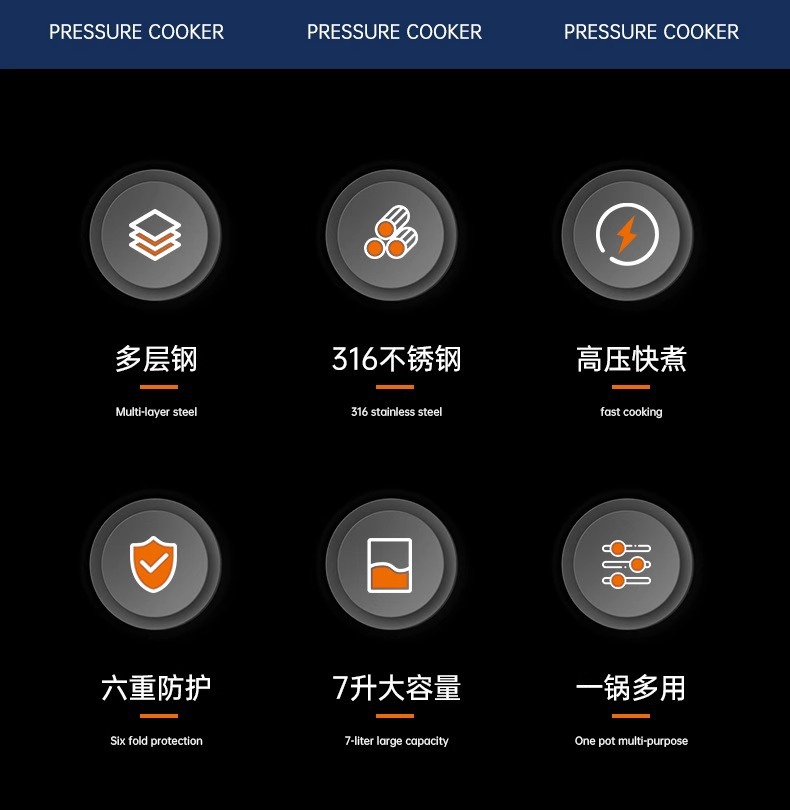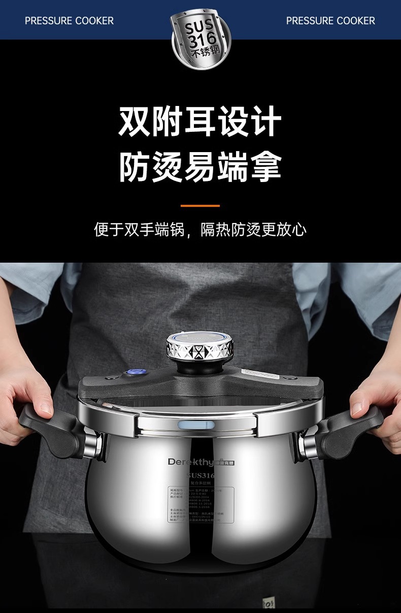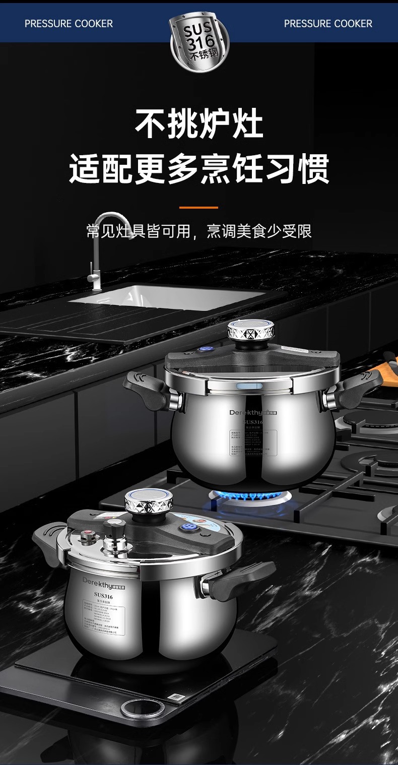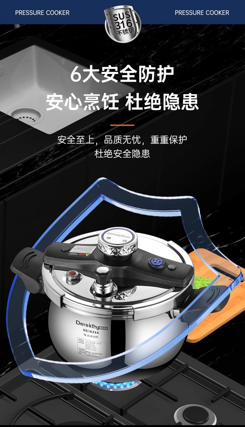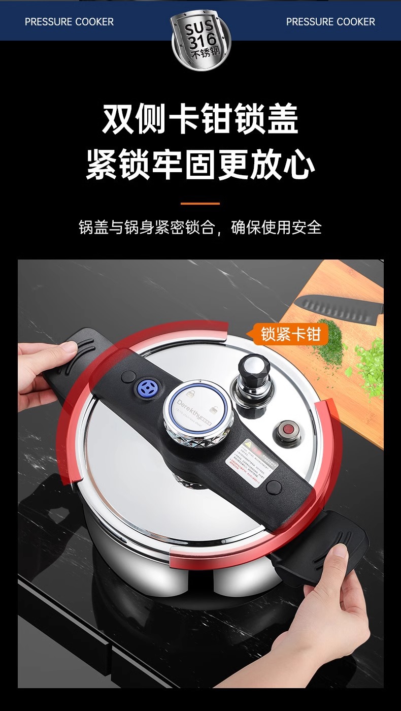 跨境德国304不锈钢加厚家用多功能高压锅防爆压力锅燃气电磁炉用