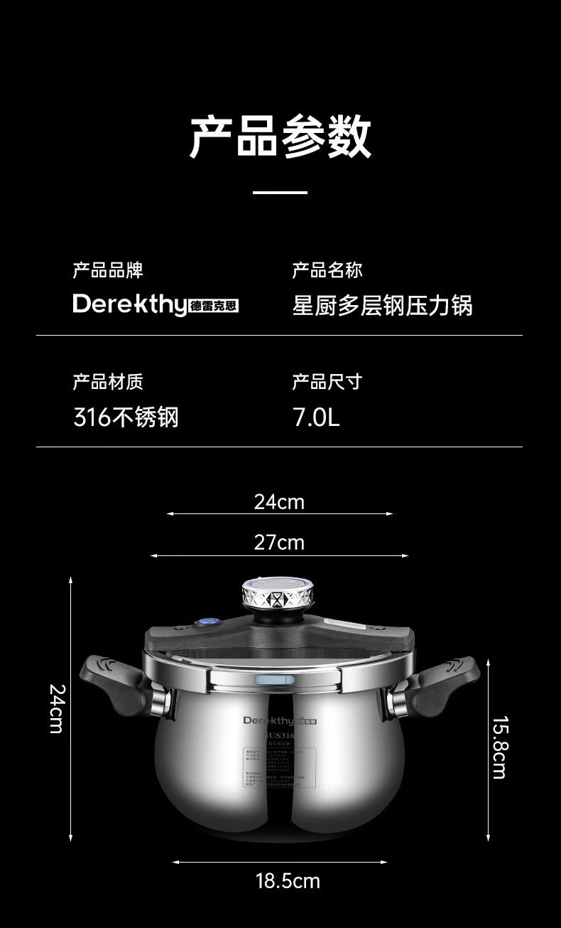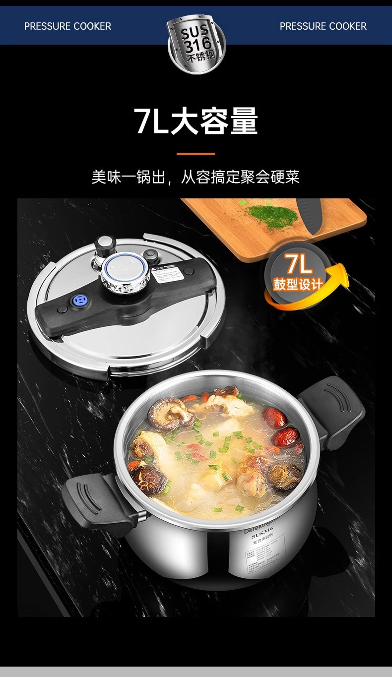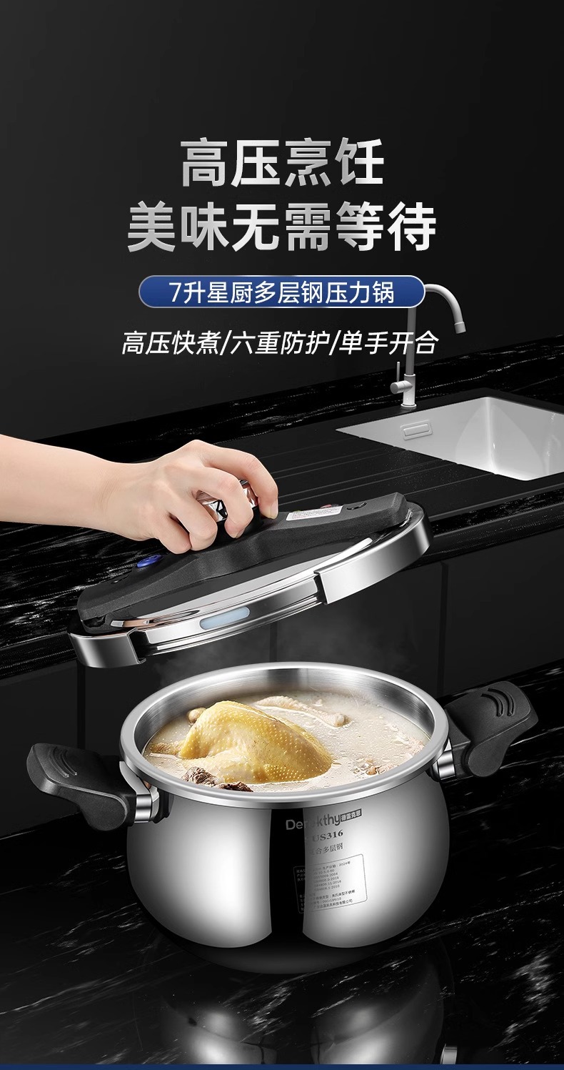 ドレクス高圧鍋家庭用304ステンレス鋼厚さ防爆圧力鍋大容量電磁炉共通