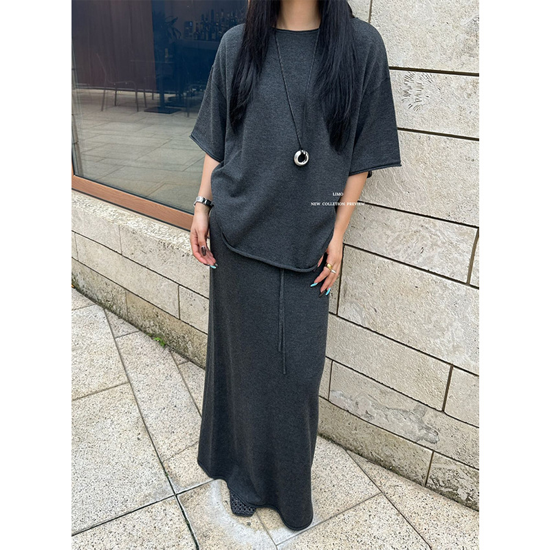 【不退换】卷边短袖羊毛衣秋季休闲简约大版型慵懒风宽松百搭上衣