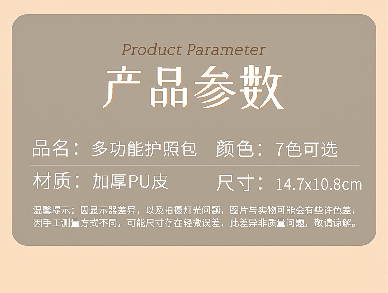 跨境拉链证件护照包大容量机票收纳卡包可印LOGO时尚旅行护照夹