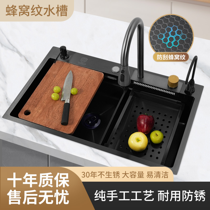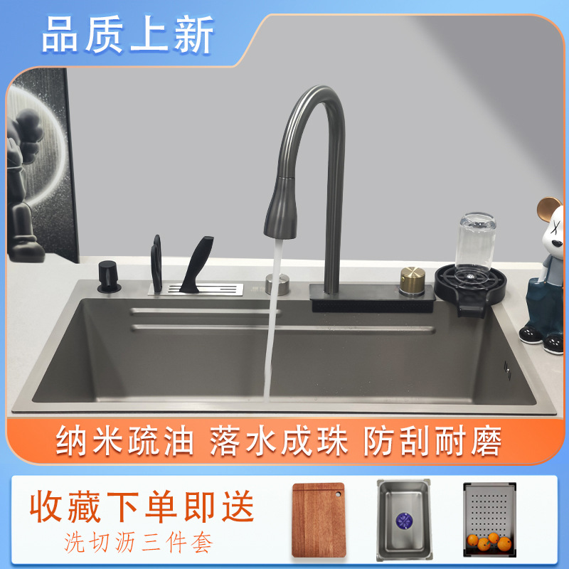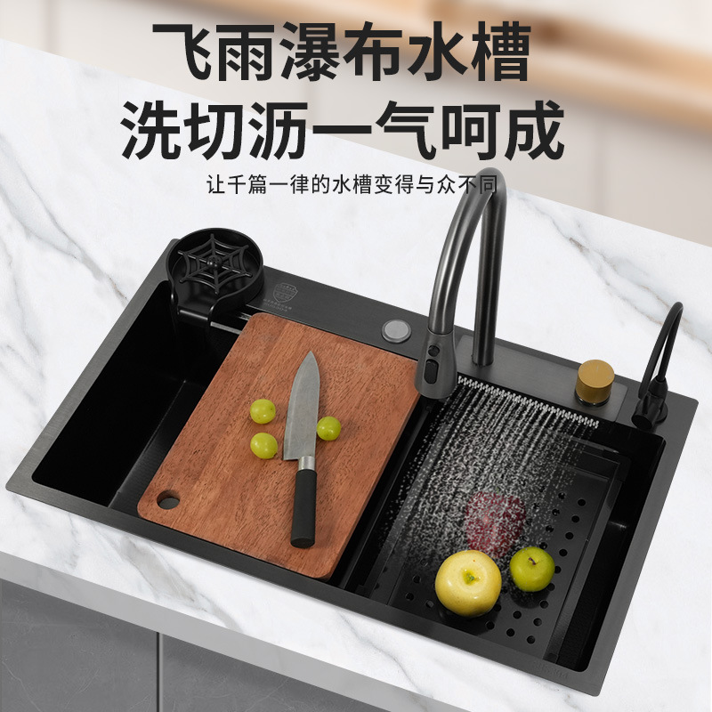 (工場直売) ハイエンドクジラ双滝出水ナノ黒ステンレス水槽家庭用キッチン皿洗い池
