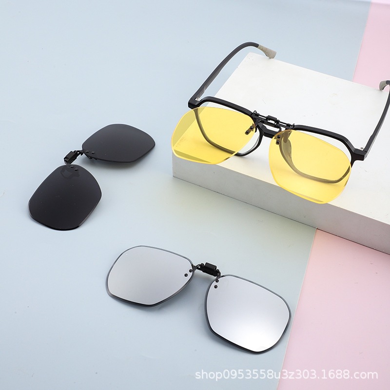 新しい色が変わるサングラスクリップオン偏光夜間視力メガネ、男性女性用運転手用近視サングラスクリップオン、強い光対応