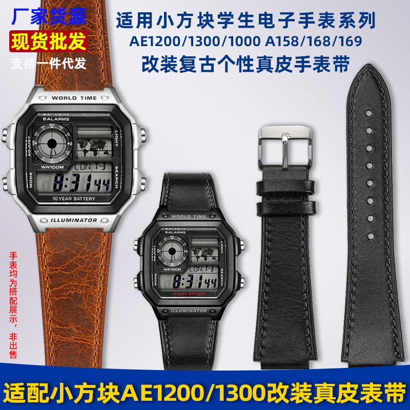 カシオ電子時計 AE1200/1300/A158/AQ-150W A159 A168 に適した本革時計ストラップ