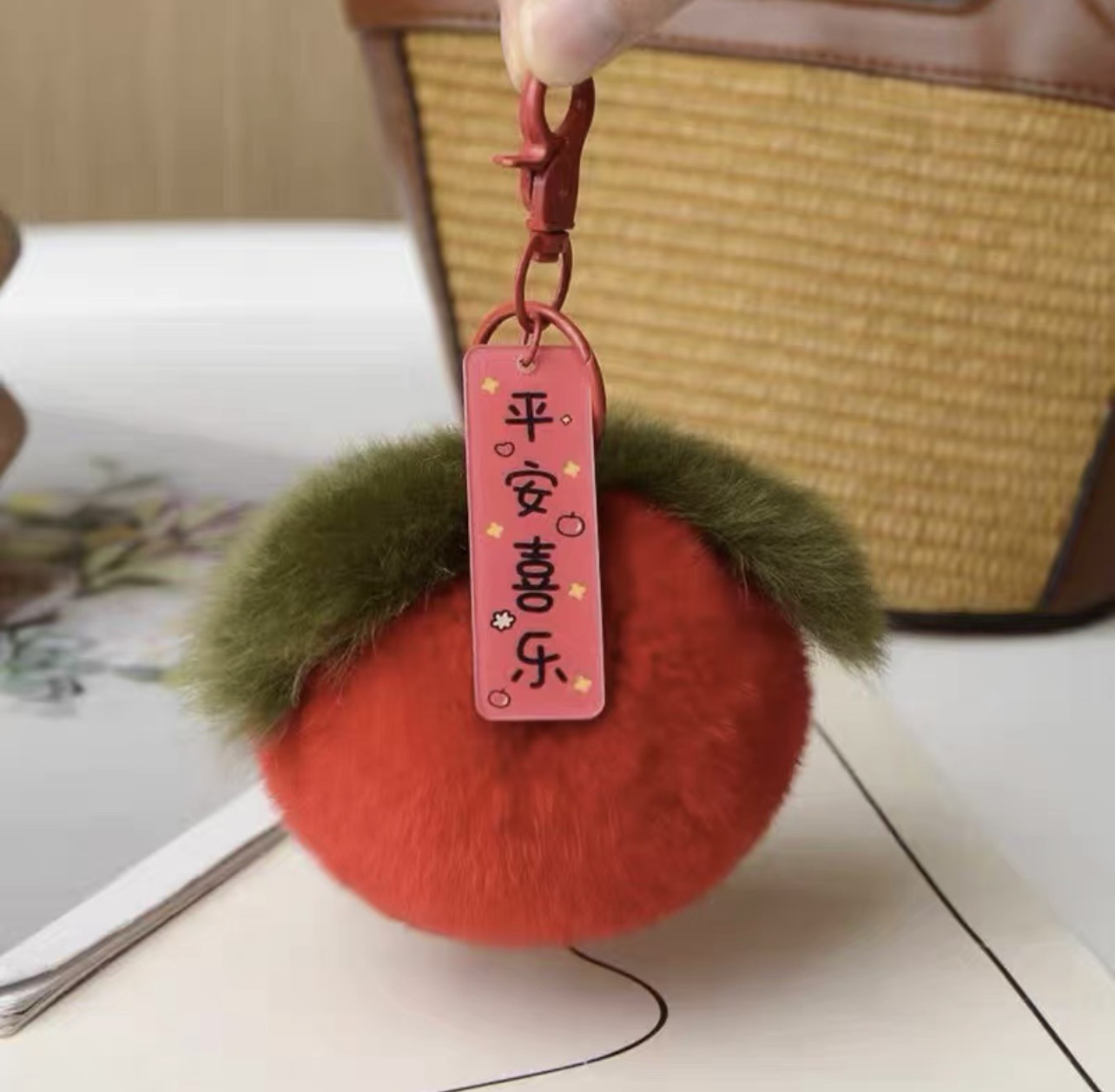 ネット赤はウサギの毛をまねて柿の如意柿のキーホルダーを掛けます。