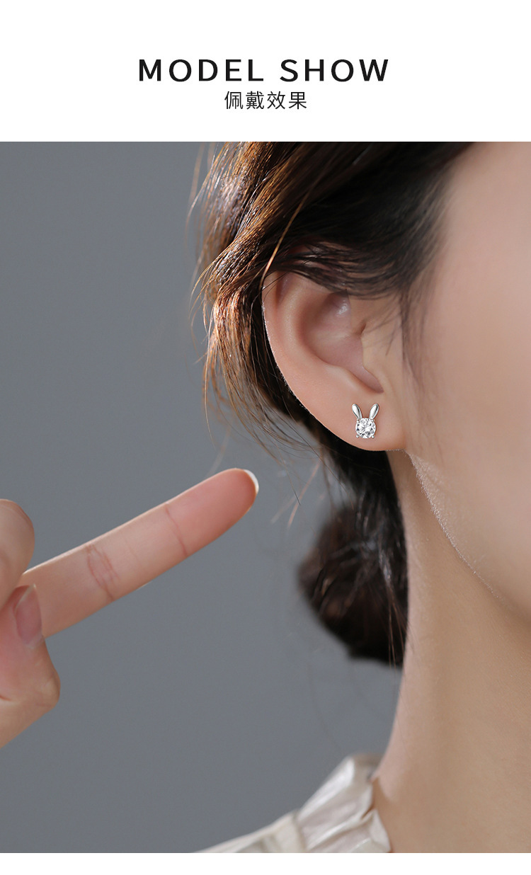 喜飾銀匠2024年新型999純銀ウサギイヤリング女性シンプル気質小衆養耳飾り女性