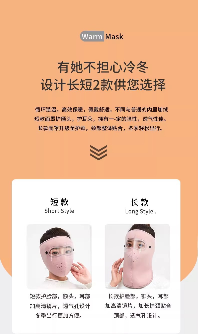 冬保温防寒騎行マスク全顔女性防風マスク冬電気自動車顔保護神器男性