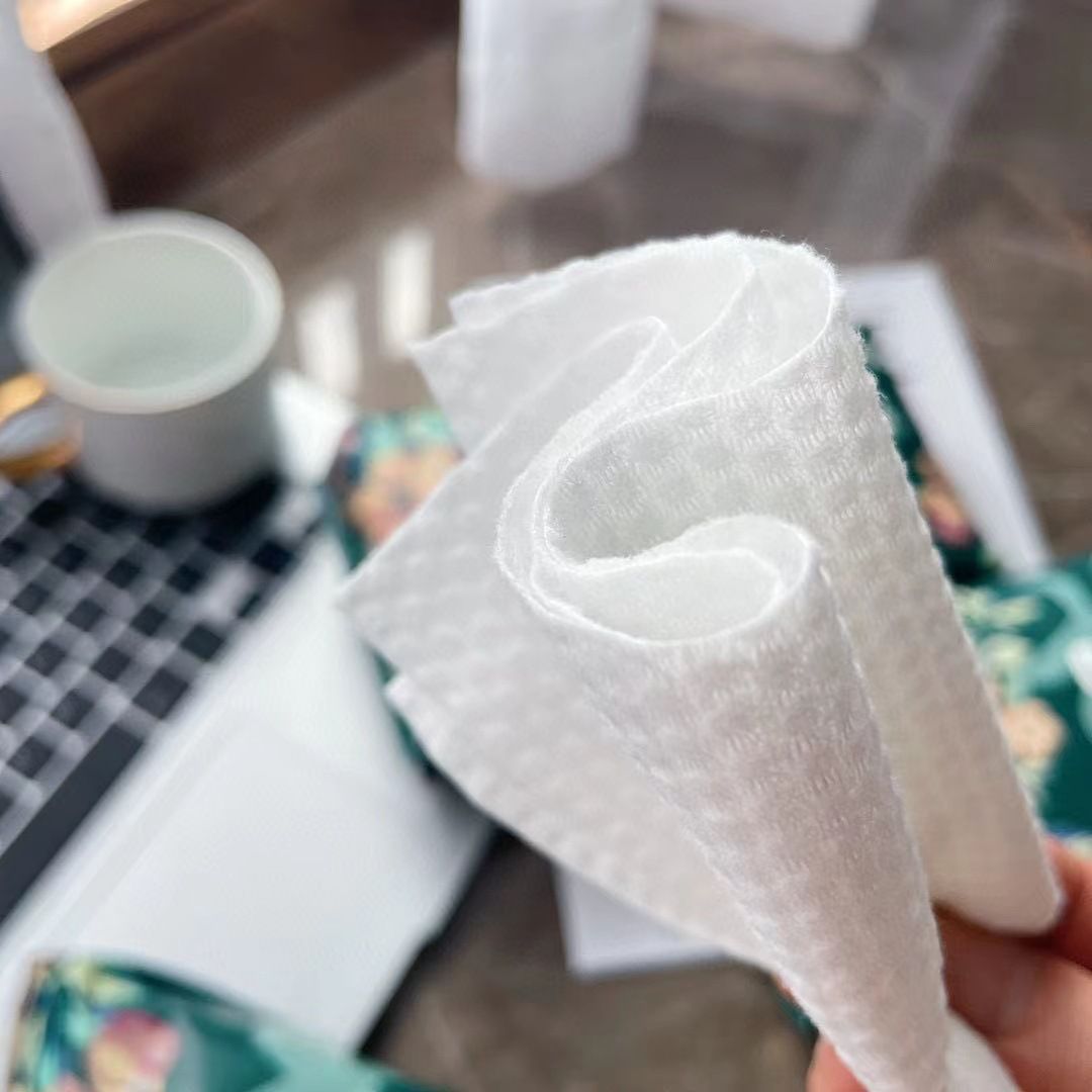 使い捨ての洗顔タオルは厚い真珠の紋様の女性の化粧を落とします。