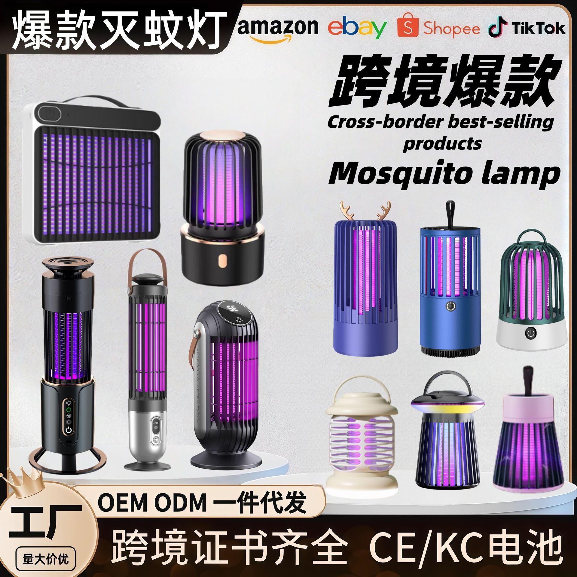 クロスボーダーUSB充電蚊取りランプ紫光灯蚊取り三合一家庭用室内携帯電気ショック蚊取りランプ神器