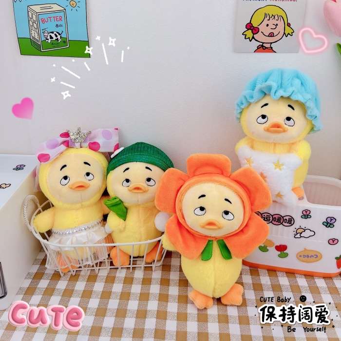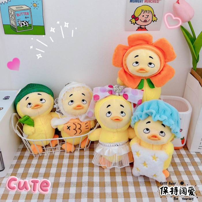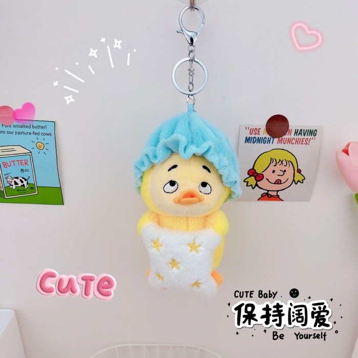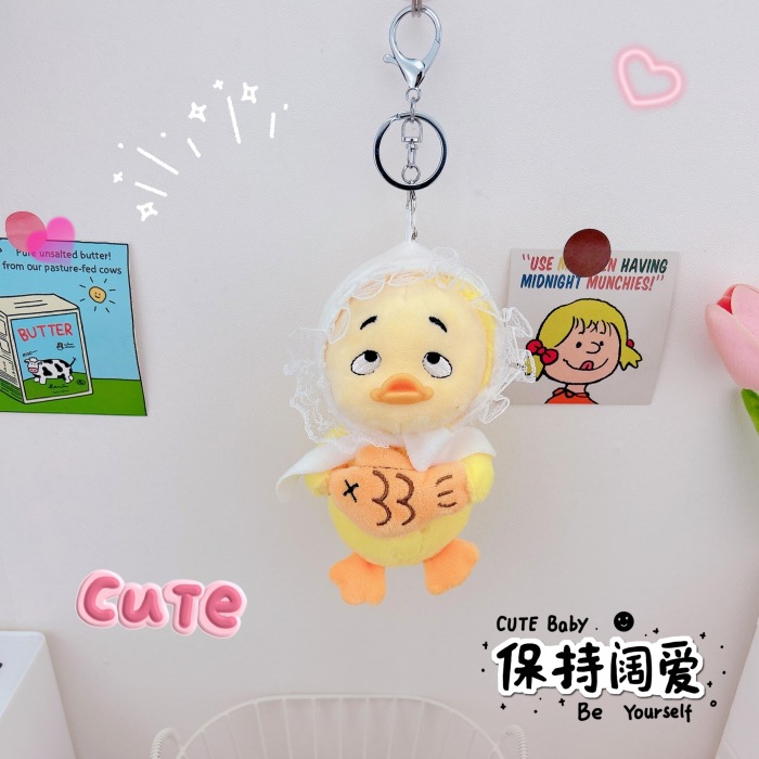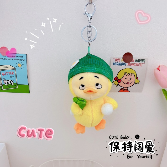 仕事が面倒だね、かわいい動物のぬいぐるみキーホルダー、バッグ飾り、ミニチュア人形、いたずらっ子アヒル