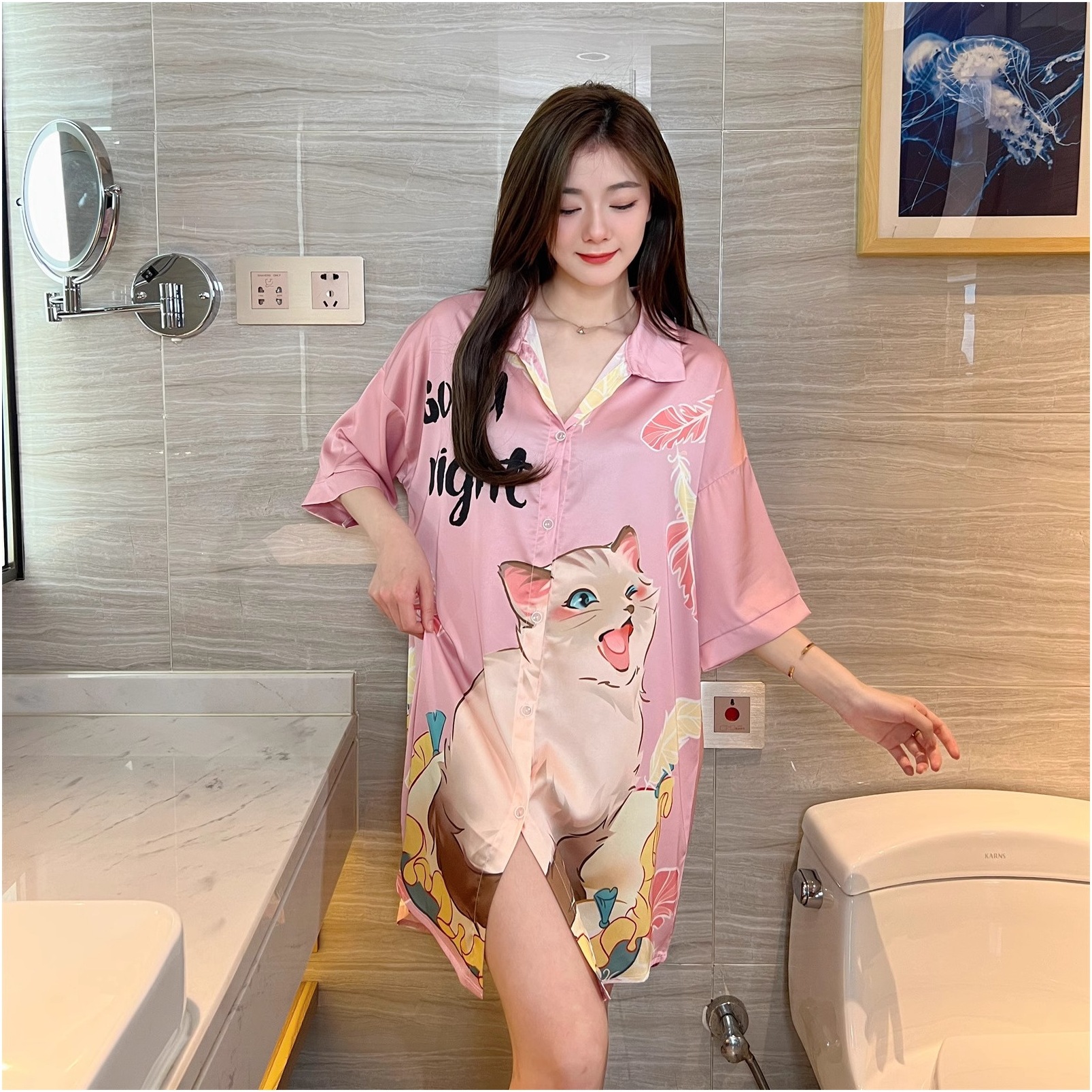 寝ているスカートの女性の夏のシルクのセクシーな2024の新型の氷の糸の純粋な欲風の高級感の猫の大きいサイズの外は寝ているスカートを着ます。