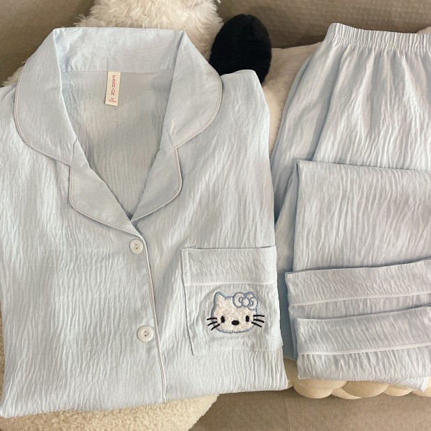 雲の綿の春の夏のパジャマの女性2025年の新型の長袖の満印の漫画の猫の家の服の夏は外にスーツを着ることができます。