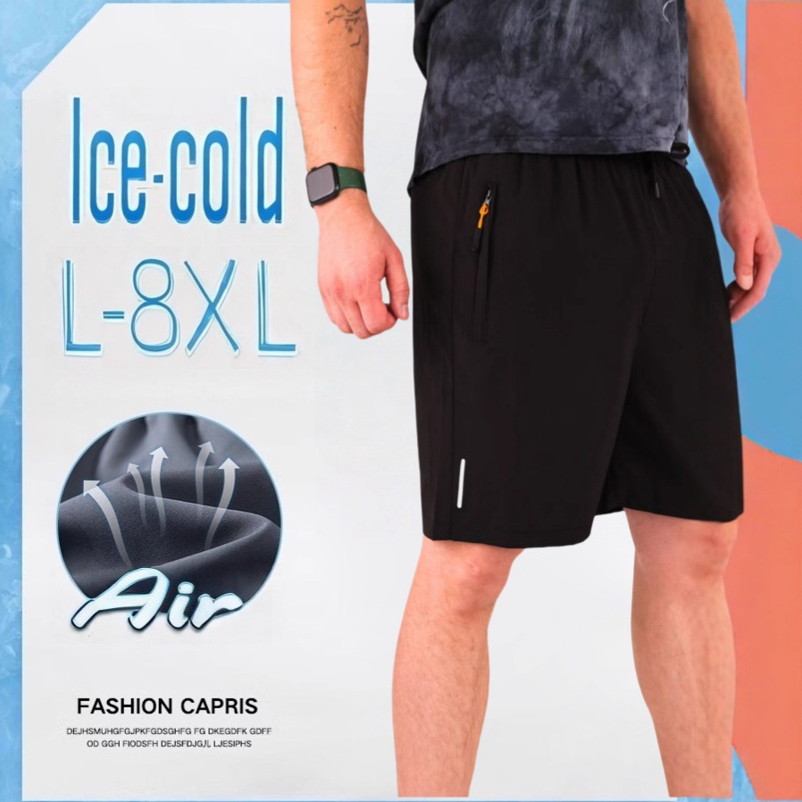 夏用アイスシルクスポーツ速乾パンツメンズショートパンツゆったり5点式ビーチカジュアルミッドパンツアイスフィール