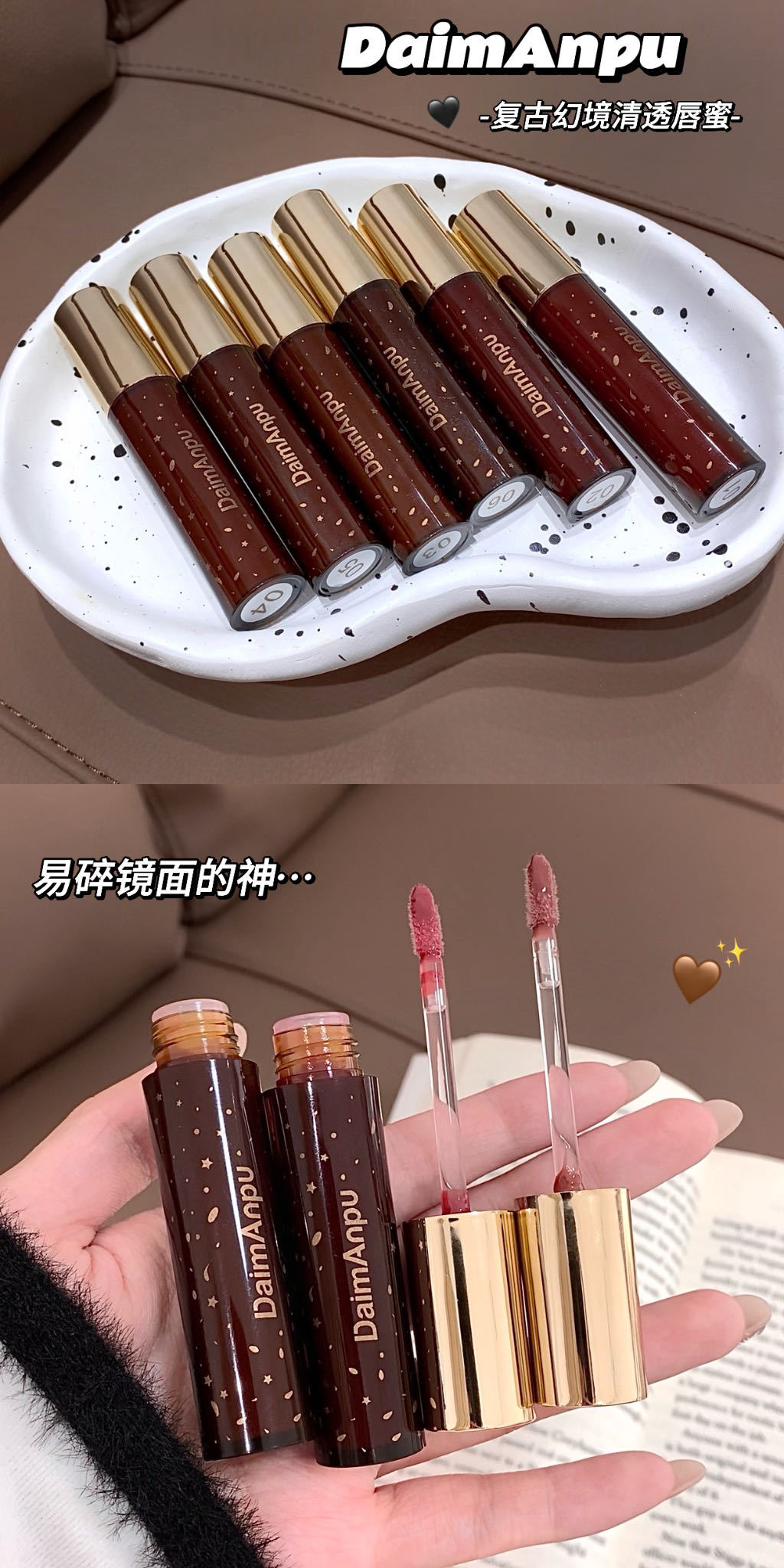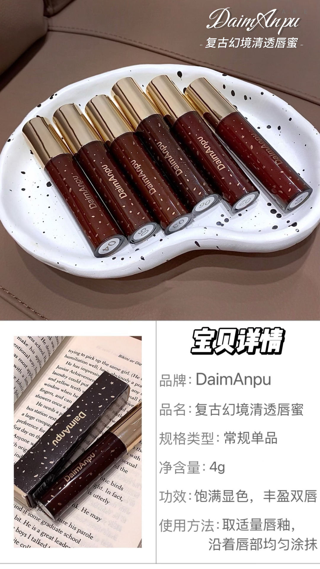 カラー 黛曼普復古唇蜜01 # 裸禾レイシ,黛曼普レトロ唇蜜02 # シドニーバラ,黛曼普レトロ唇蜜03 # 冷ブラウンココナッツ,黛曼普レトロ唇蜜04 # 花間重力,黛曼普レトロ唇蜜05 # 遊離茶ブラウン,黛曼普レトロ唇蜜6 # 野獣の花