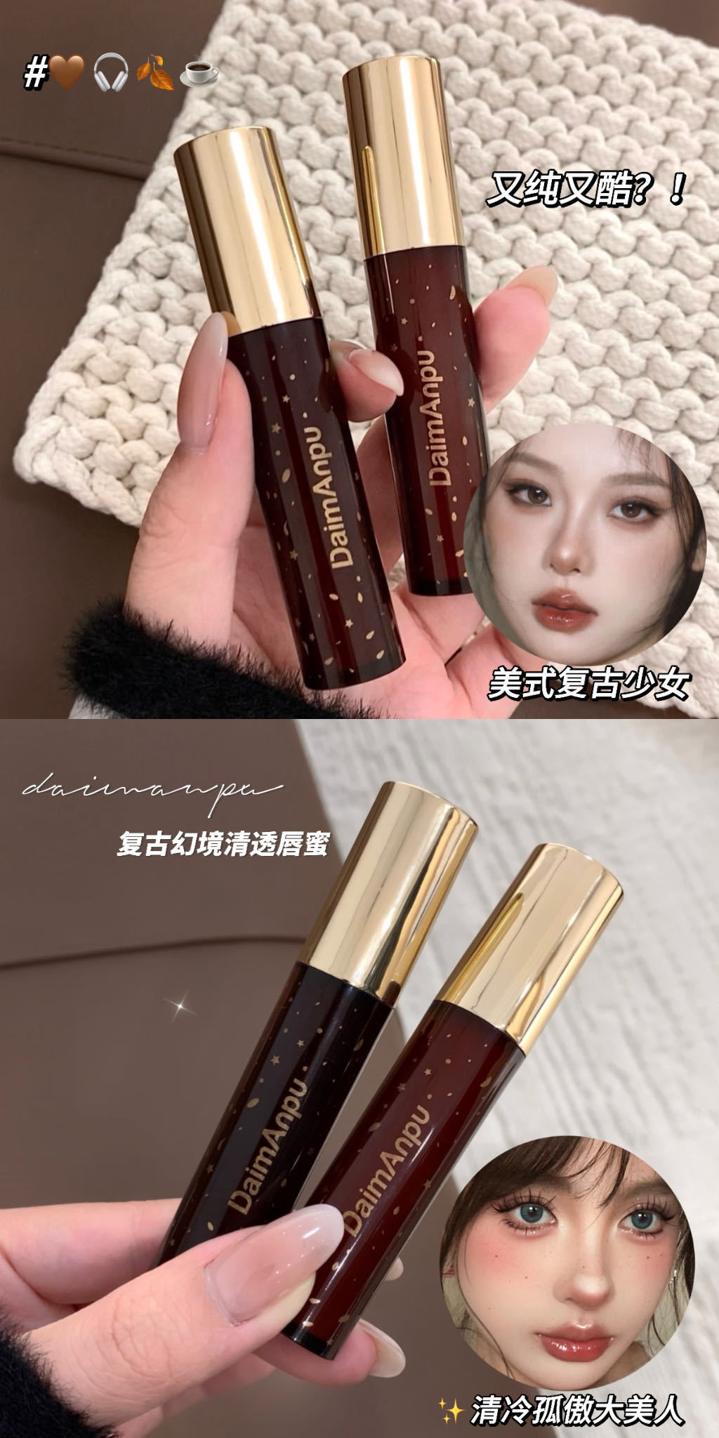 純欲復古幻境清透唇蜜黄皮逆襲水光鏡面偽素顔白唇釉薬学生口紅