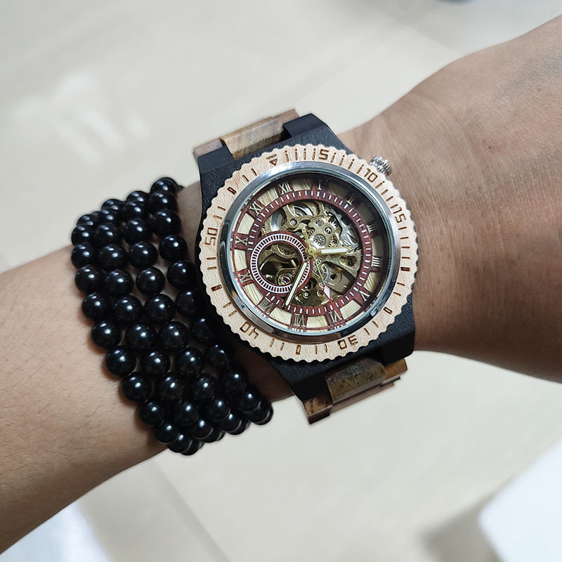 スポットシマウマ鋼間木全自動機械腕時計男性高級木製腕時計代理