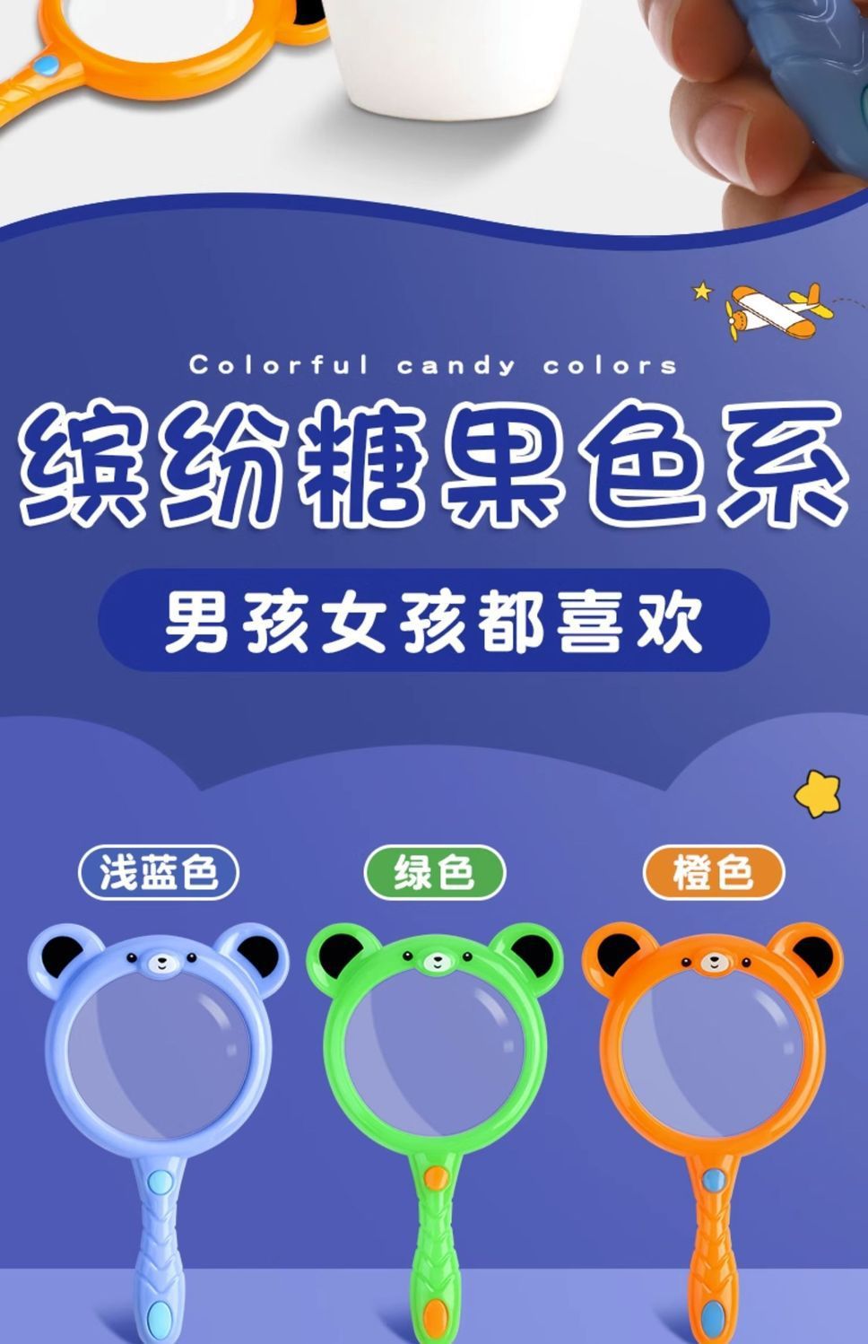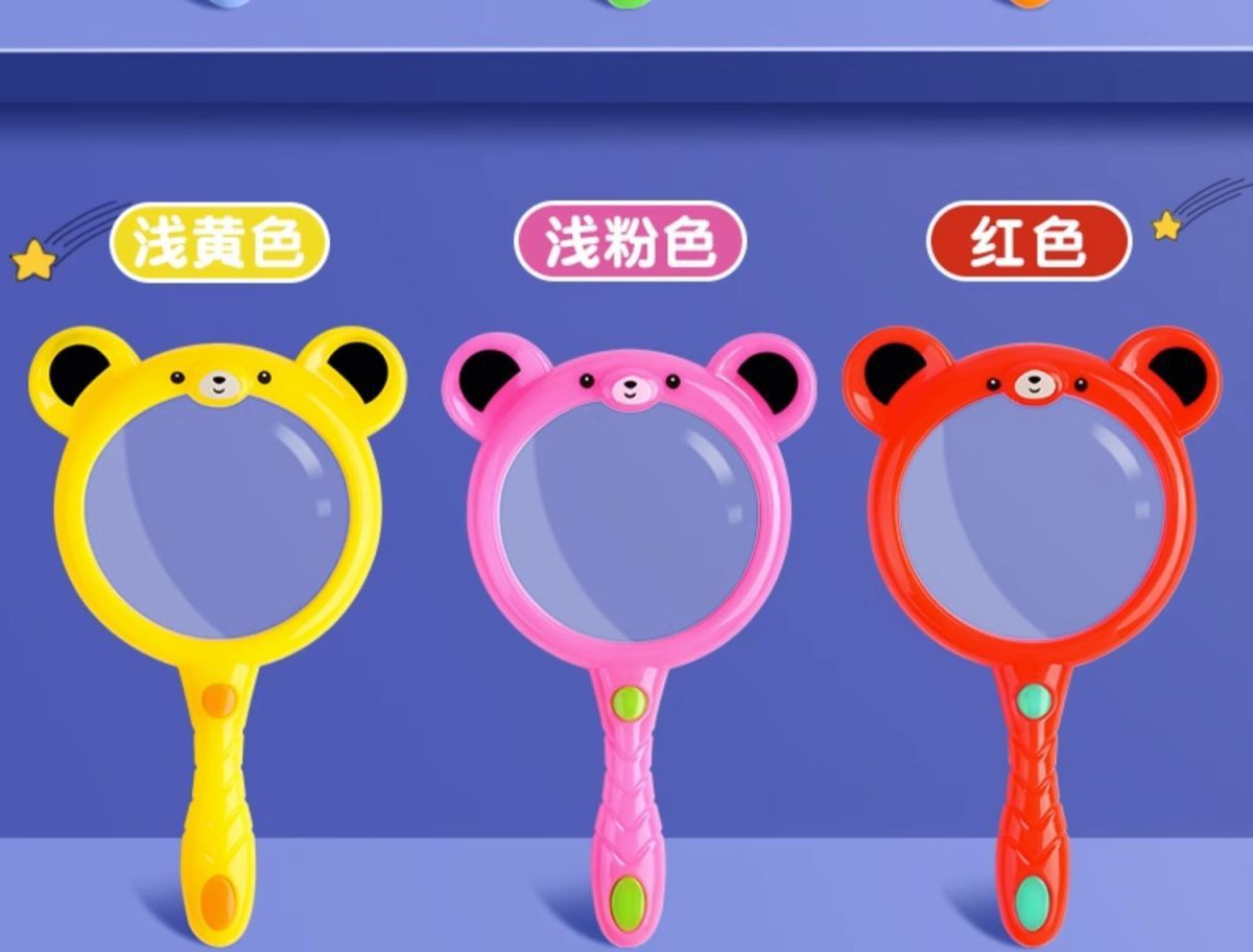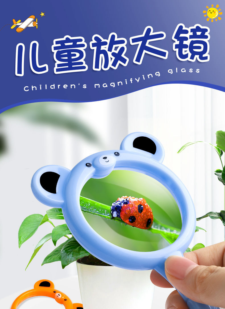 专供外贸卡通小熊放大镜糖果色幼儿园学生探索科教动植物观察玩具