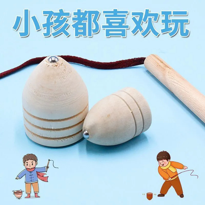 袋入り木製こまセットノスタルジックなおもちゃスラッシュこま伝統的なツーインワン無垢材木製楽しいおもちゃ卸売