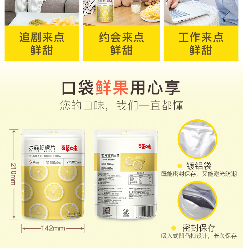 百草味水晶レモンスライス65gオフィス食品原味抽出水インスタントレモン乾燥果物茶卸売り