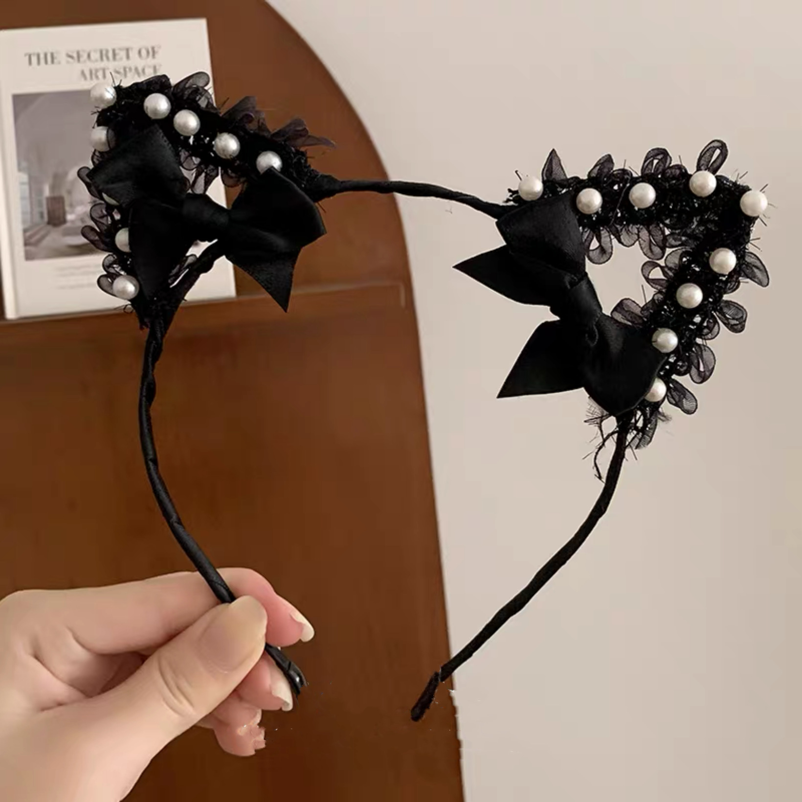 趣味アクセサリー日韓系レース猫耳カチューシャセクシーな猫の頭飾り真珠カチューシャ耳飾り