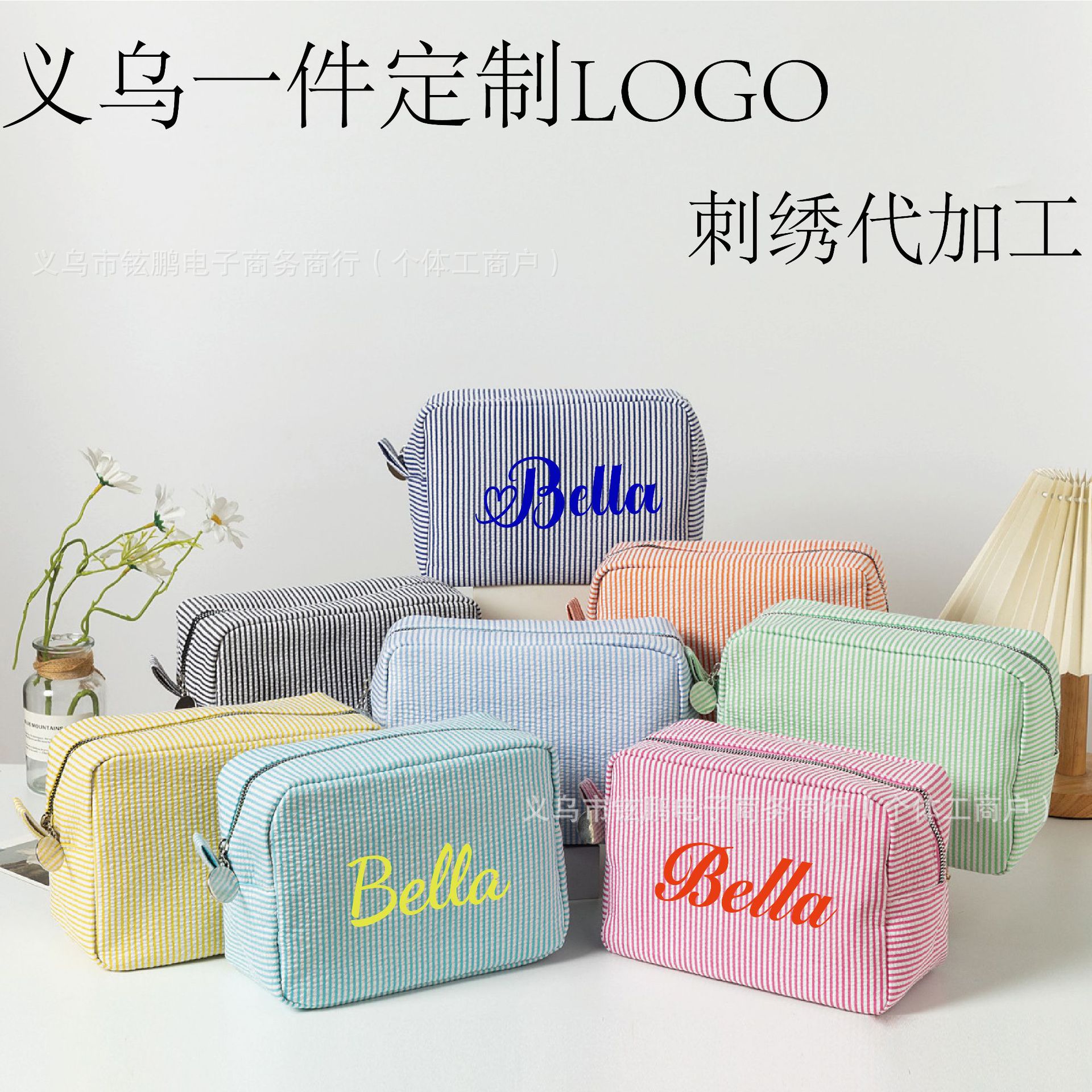 Etsyカスタムロゴ入りストライプ化粧ポーチ、洗面用具入れ、旅行用収納バッグ、刺繍加工、化粧品