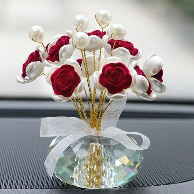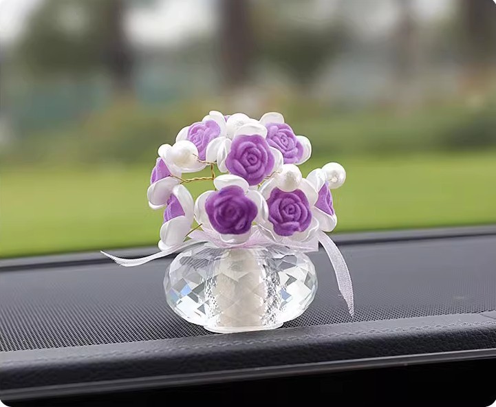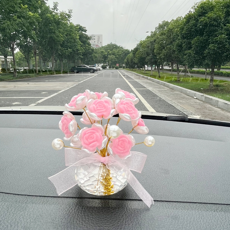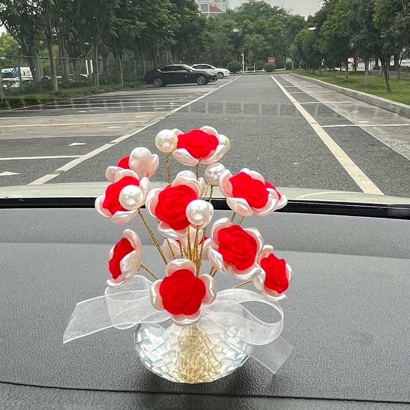 手作りの植毛バラのアイデアをシミュレーションした車内高級アクセサリー車に飾られたアロマ車の置物センターコンソール