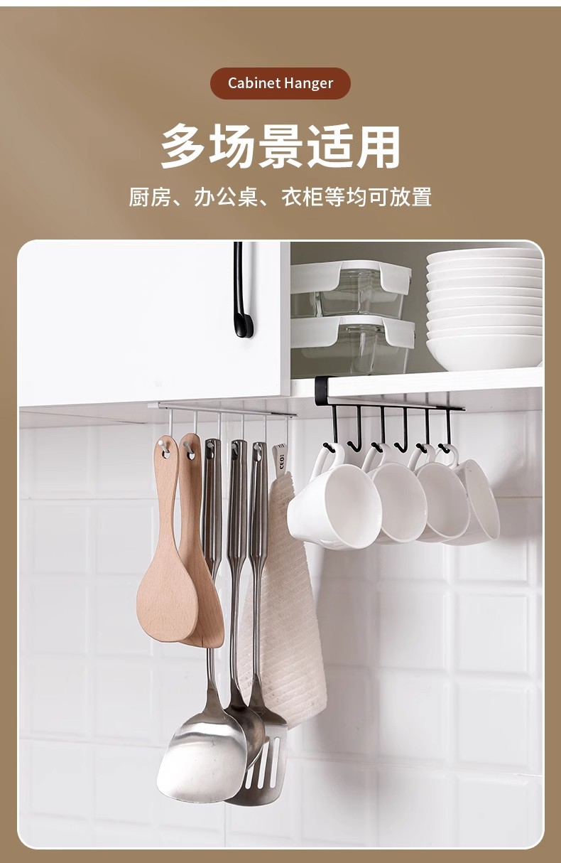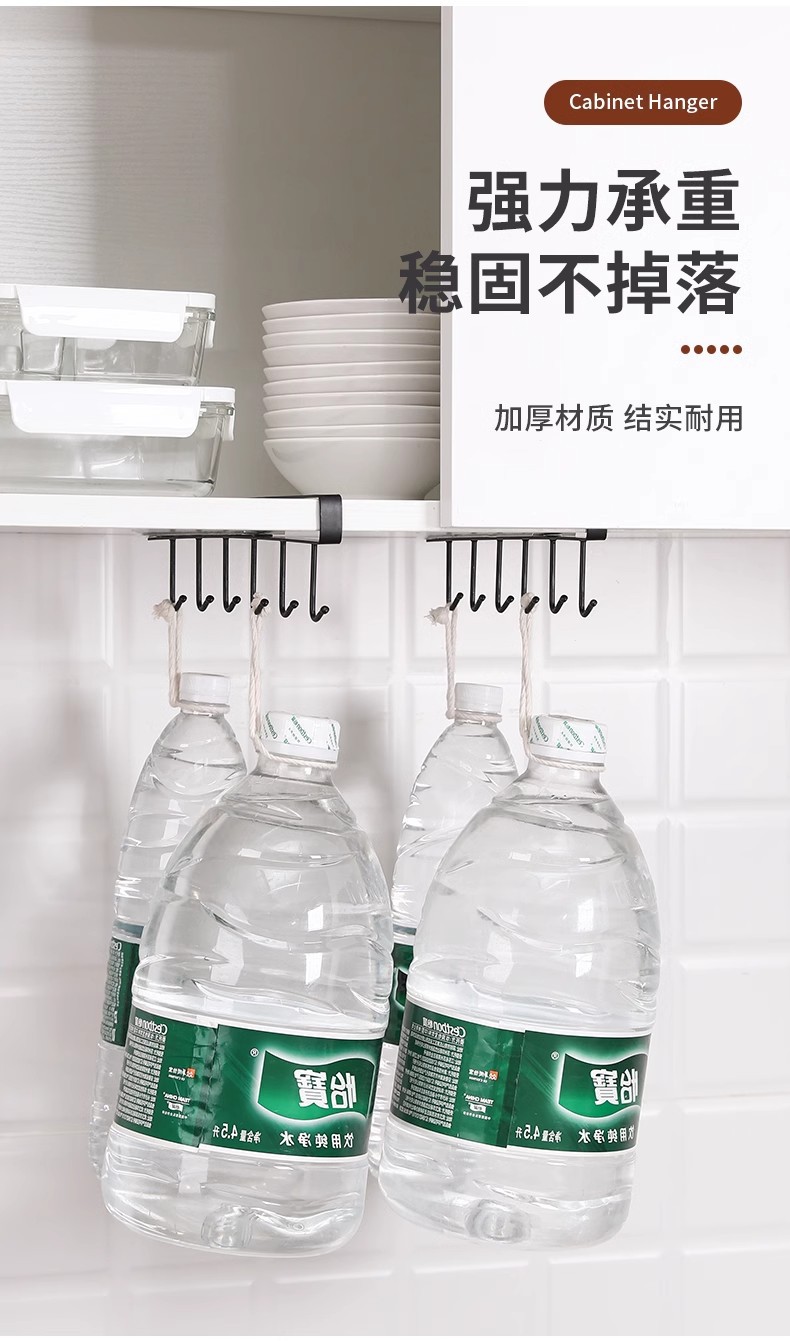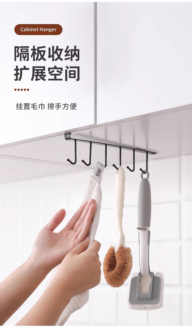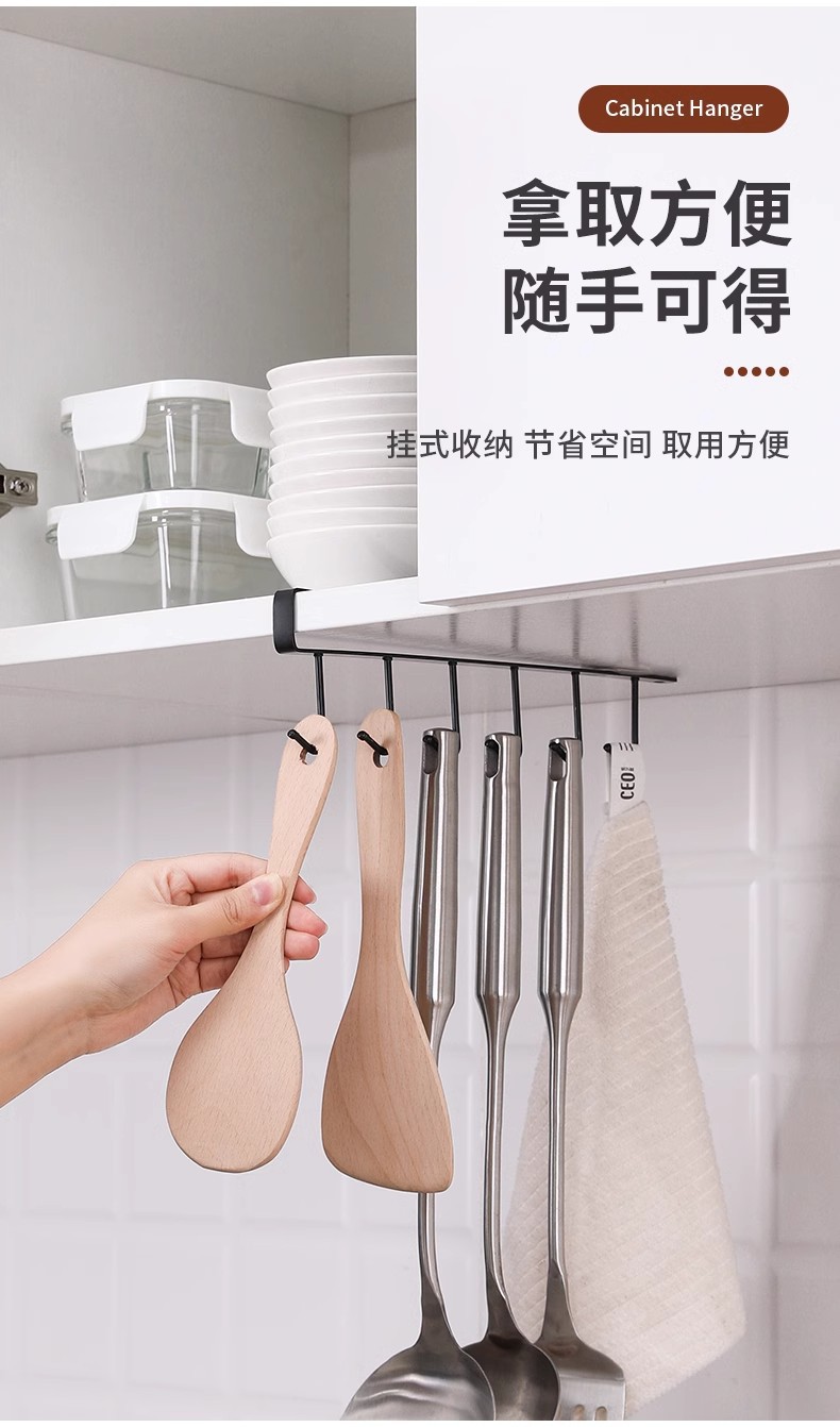 厨房铁艺无痕免钉挂钩多排橱柜收纳挂架六连排钩衣柜6连钩整理架