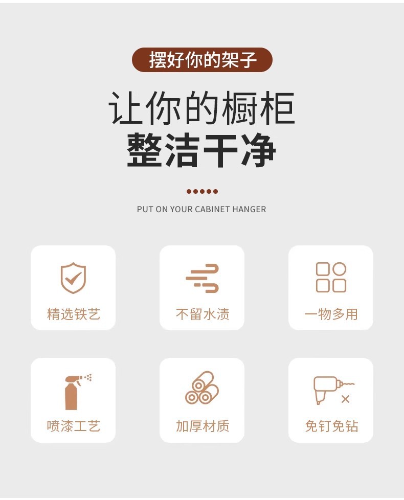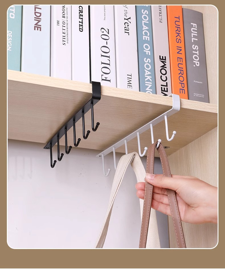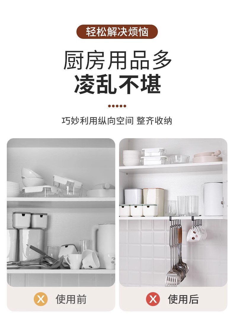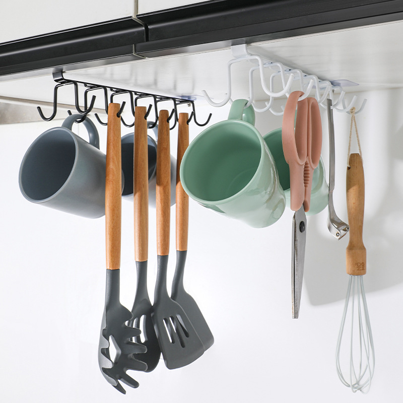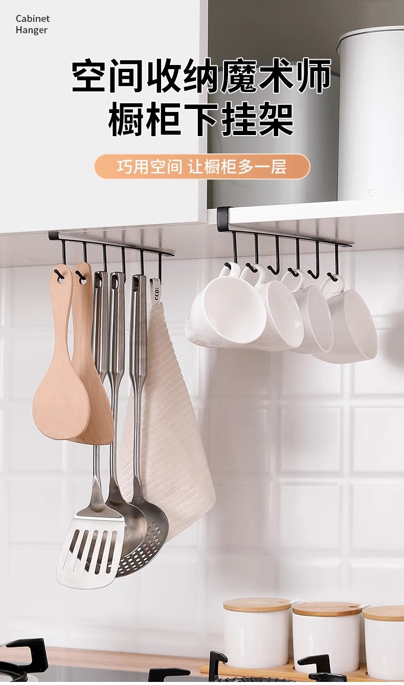 厨房铁艺无痕免钉挂钩多排橱柜收纳挂架六连排钩衣柜6连钩整理架