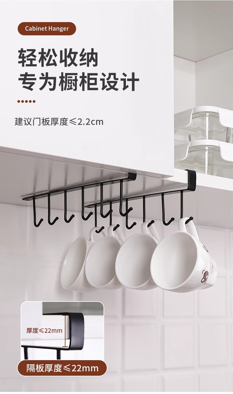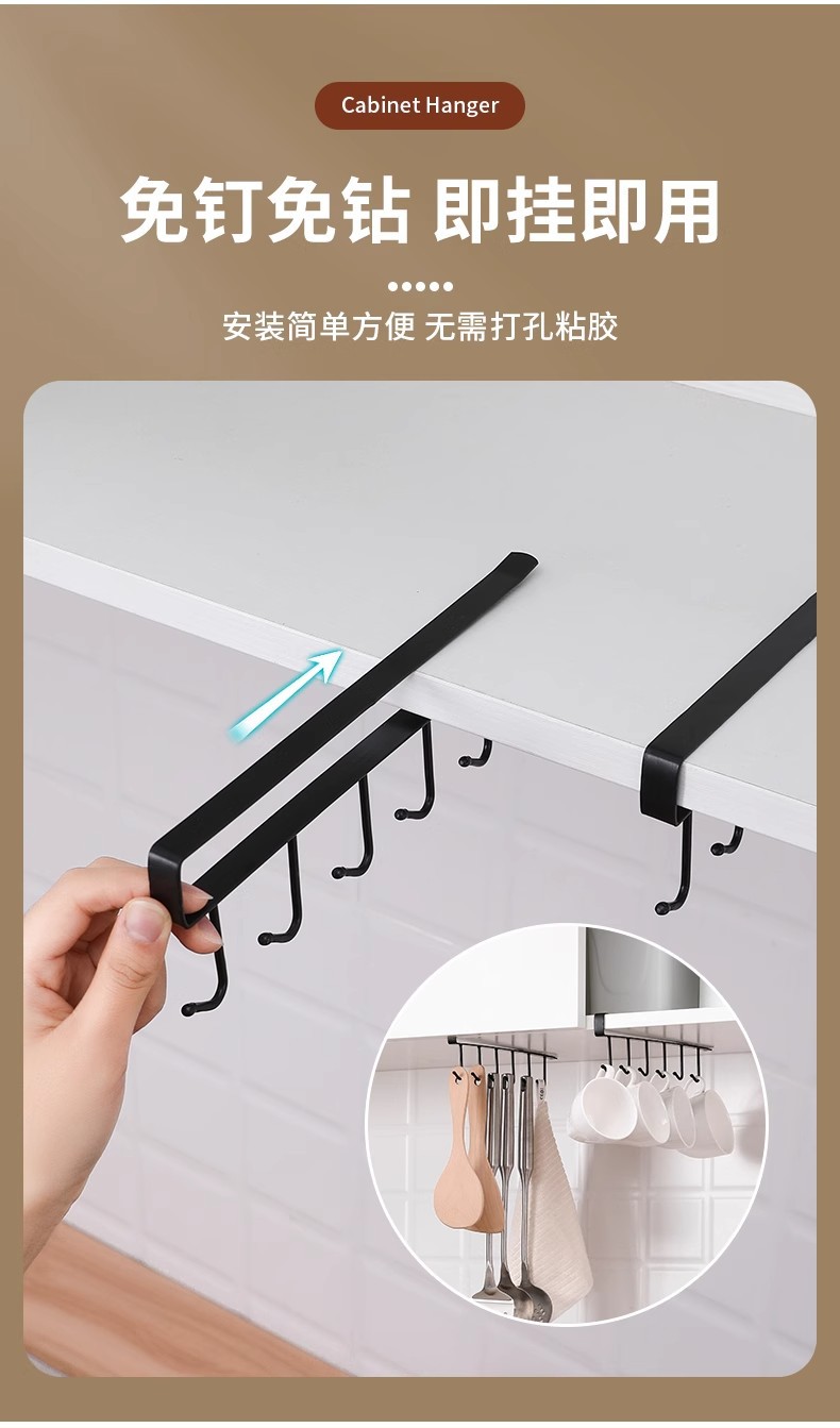 免打孔家用厨房杯架子置物架水杯架橱柜挂架悬挂式挂钩整理收纳架