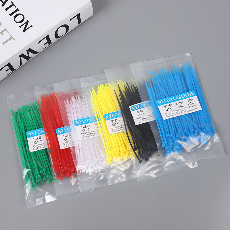 ナイロンケーブルタイ、カプラ付きセルフロック式プラスチック結束バンド、サイズ3*100mm、多色セルフロック式ケーブルタイ