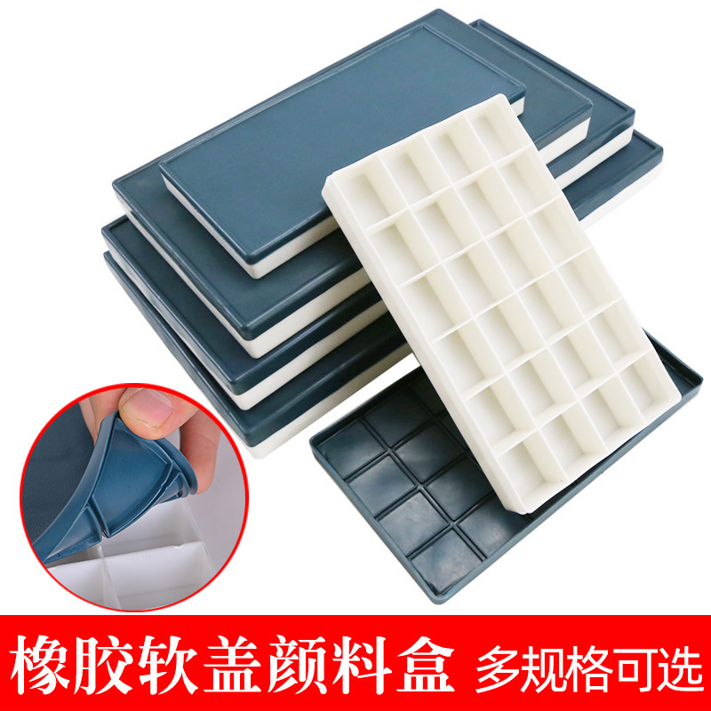 明華24格アクリル水粉ソフトカバー絵の具箱分注箱48格携帯オーバーフロー防止絵の具箱空箱パレット箱