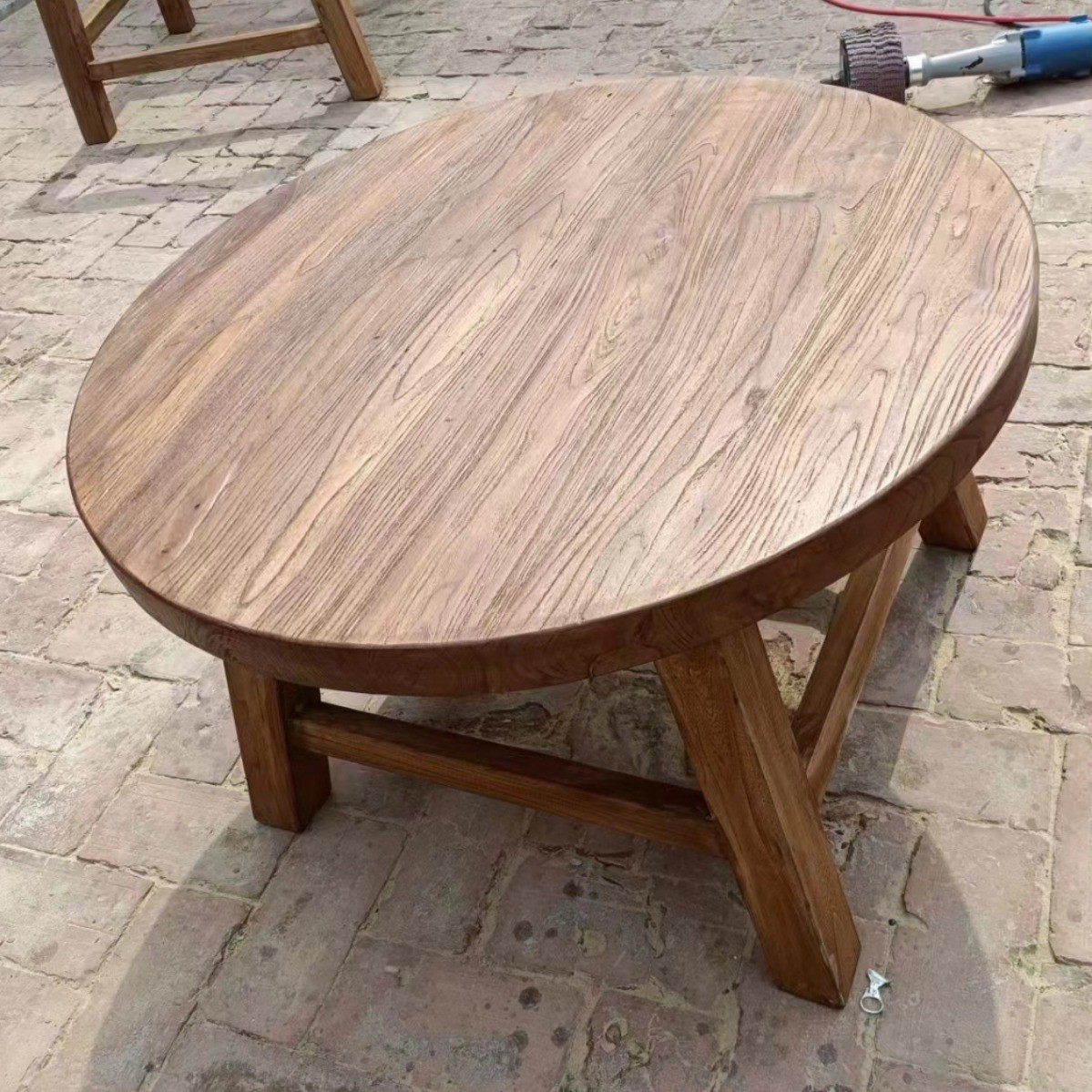 古い楡の木の丸いテーブルの扉の板の風化の楡の木のテーブルの家庭の食卓の円形のお茶のテーブルの新しい中国式の実木の家具