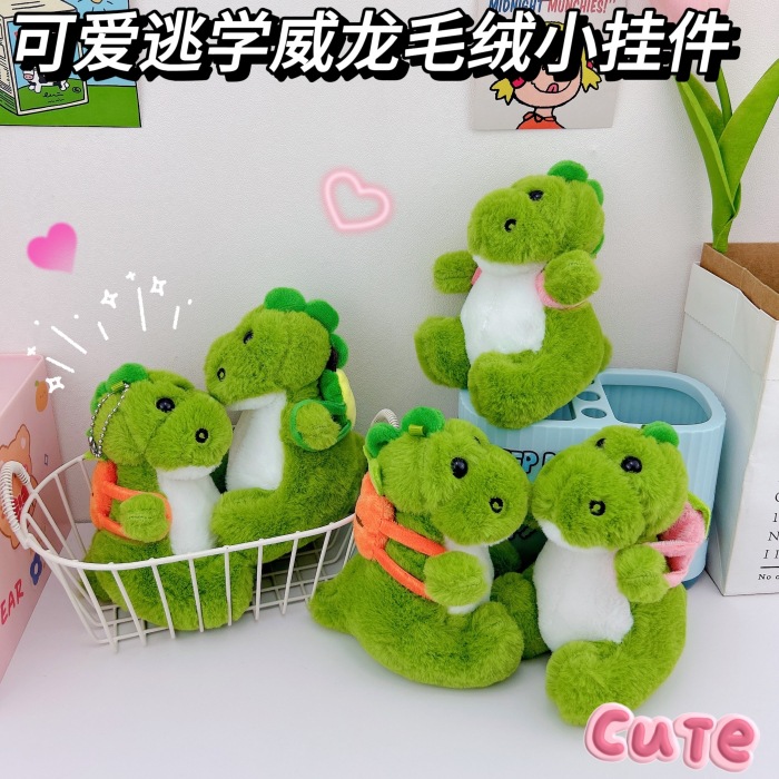 【香】かわいい不登校龍学生がかばんを背負っている緑の小さな恐竜のキーホルダーがぬいぐるみの人形を飾っている