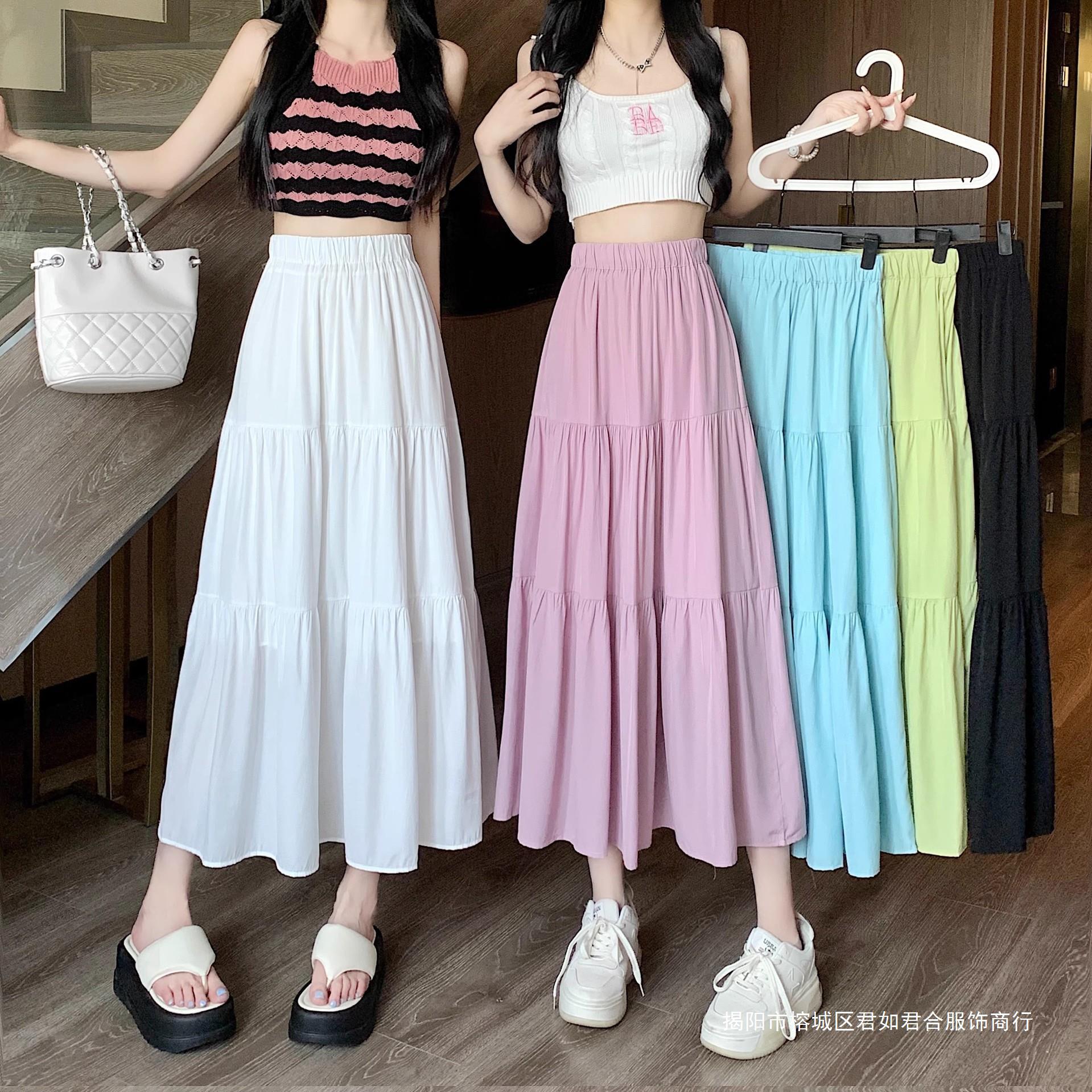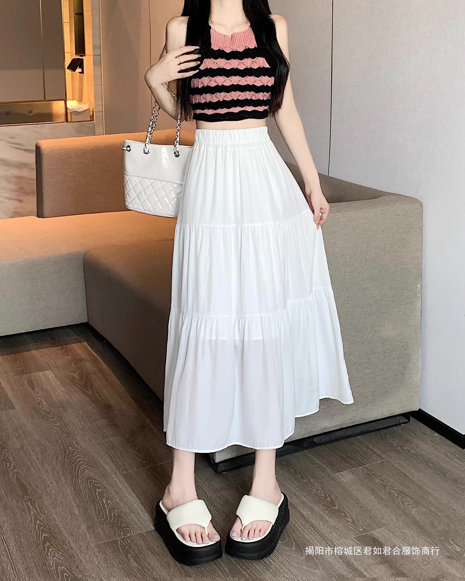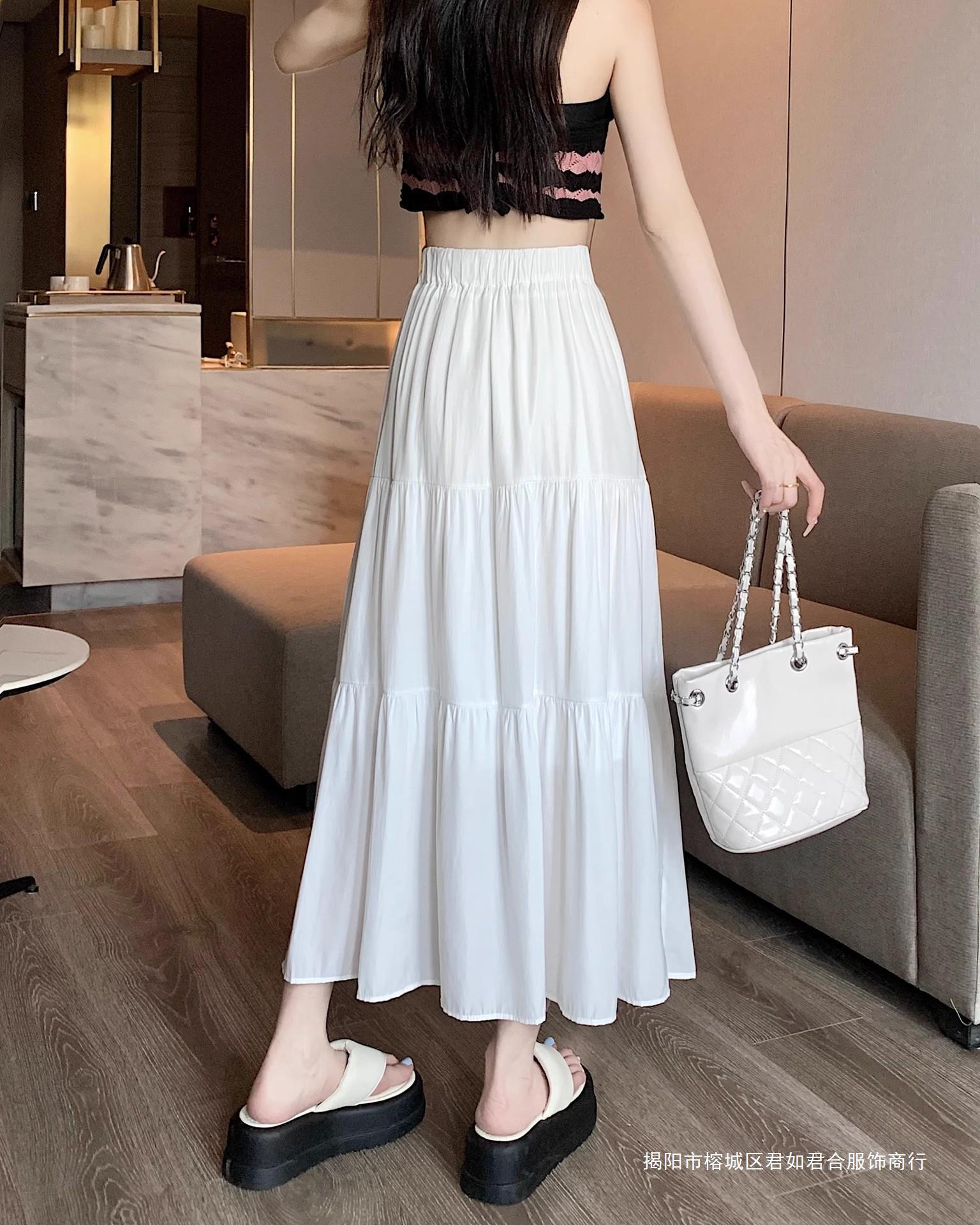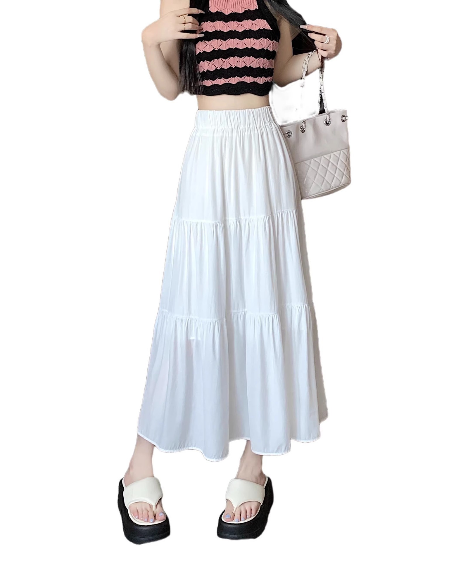 白い半身のスカートの女性の春夏2024の新型は腰を緩めて股を覆って痩せている中の長いタイプのケーキのスカートの傘のスカートのinsを現します。