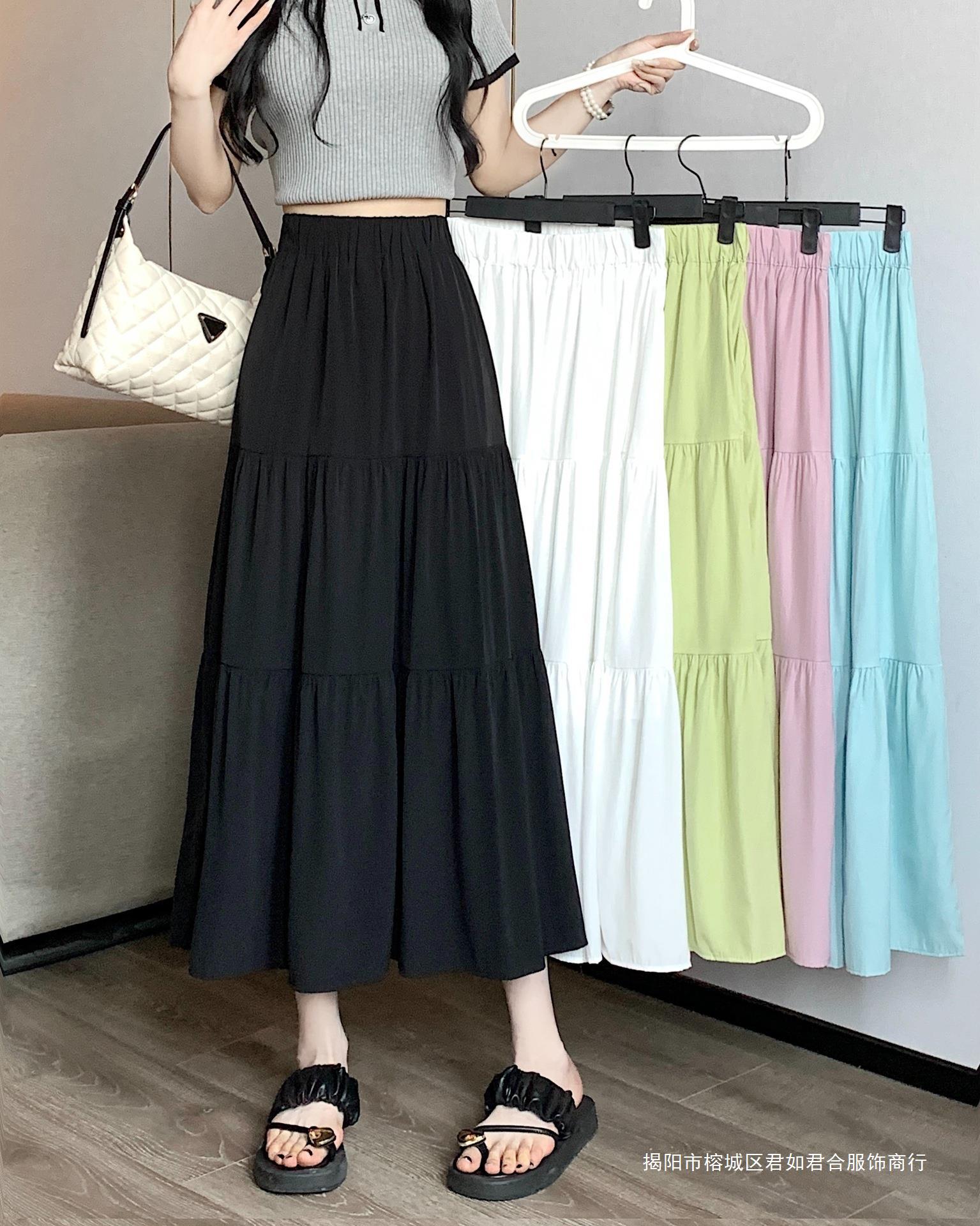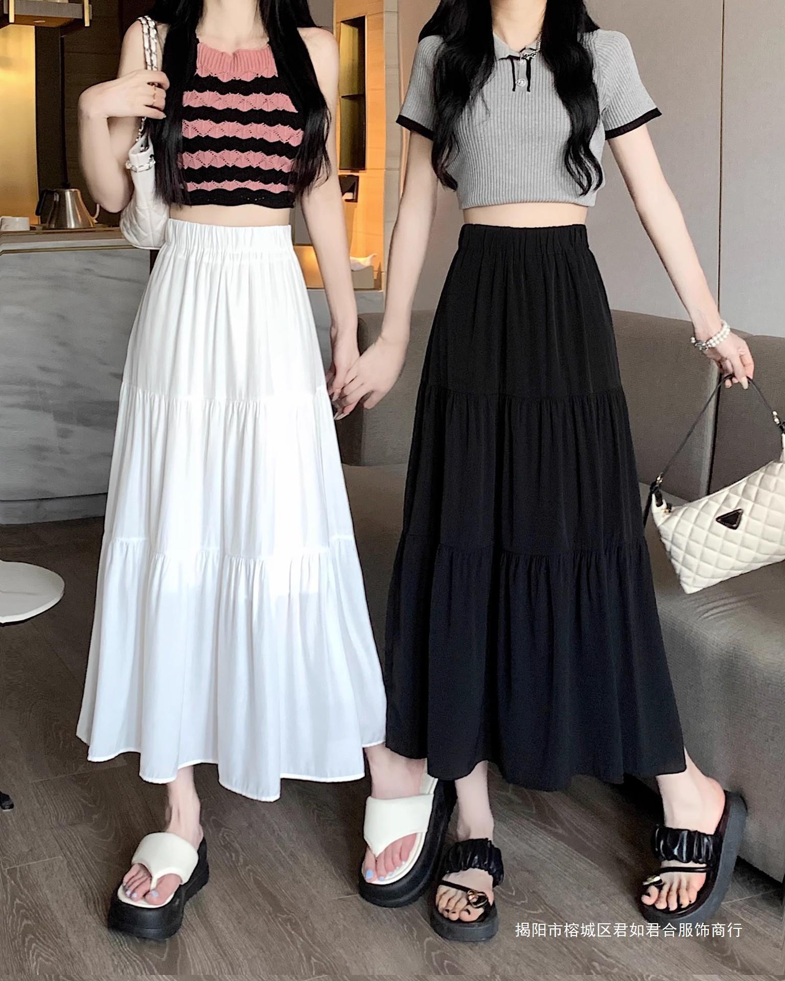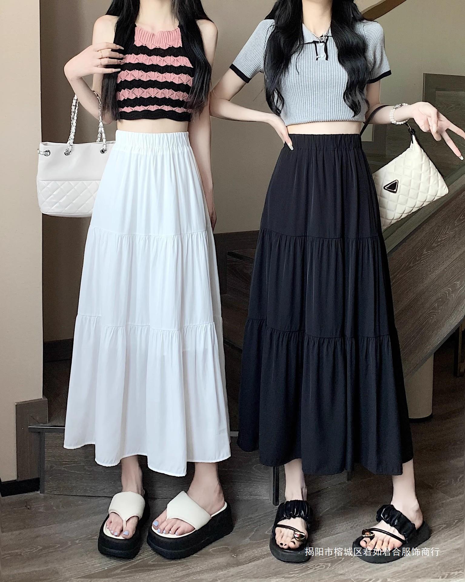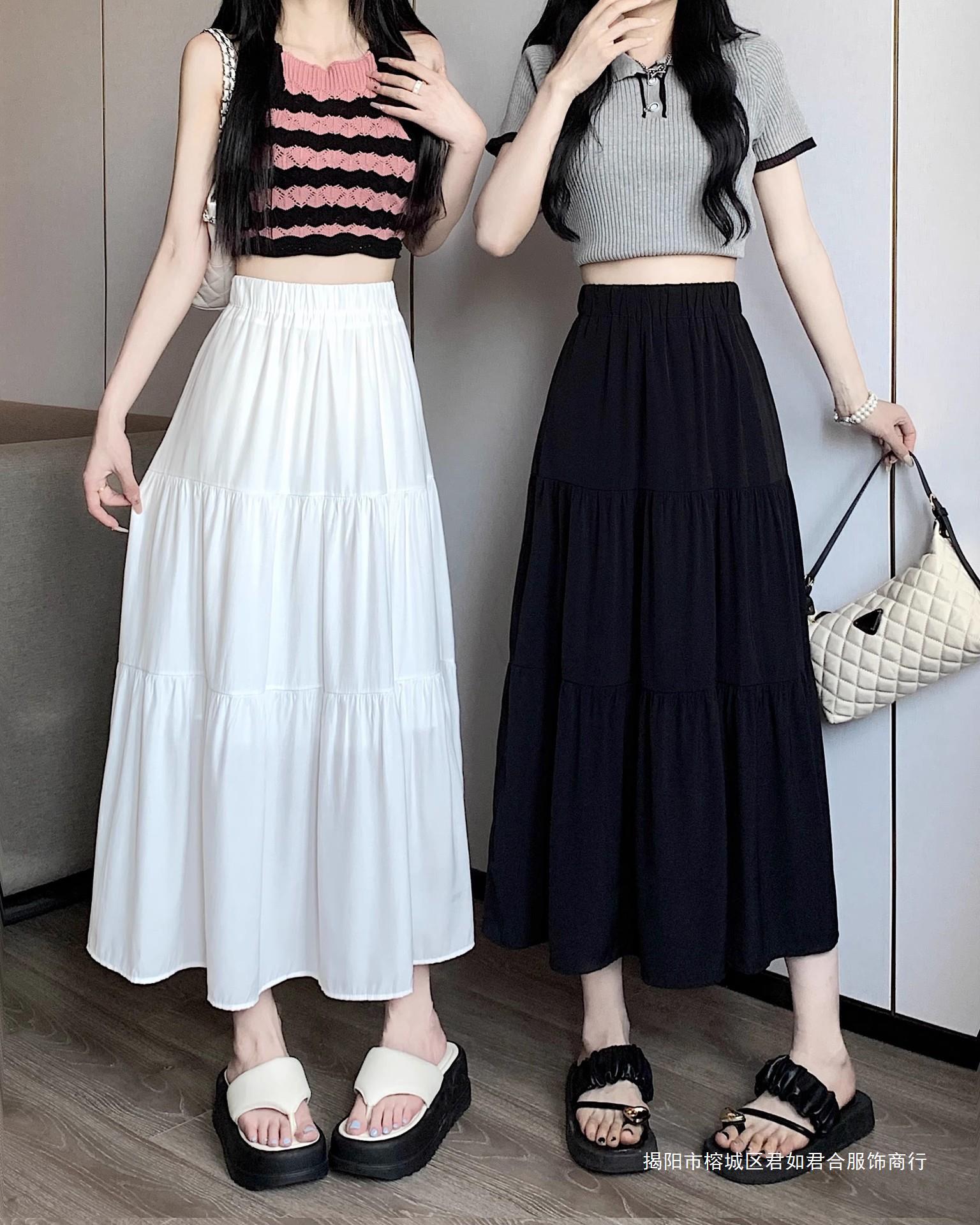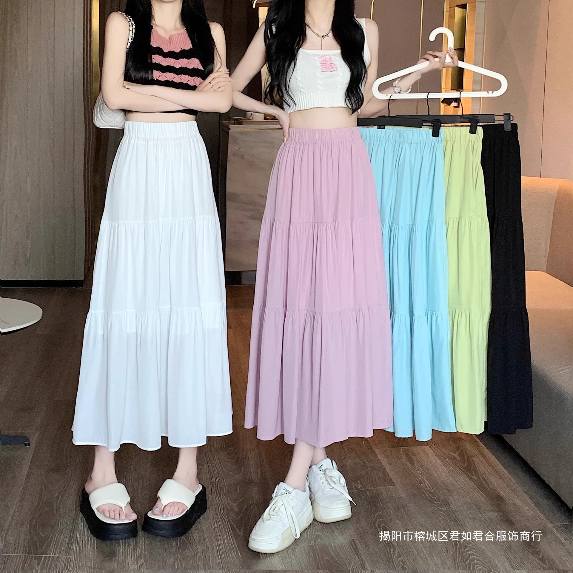 白い半身のスカートの女性の春夏2024の新型は腰を緩めて股を覆って痩せている中の長いタイプのケーキのスカートの傘のスカートのinsを現します。