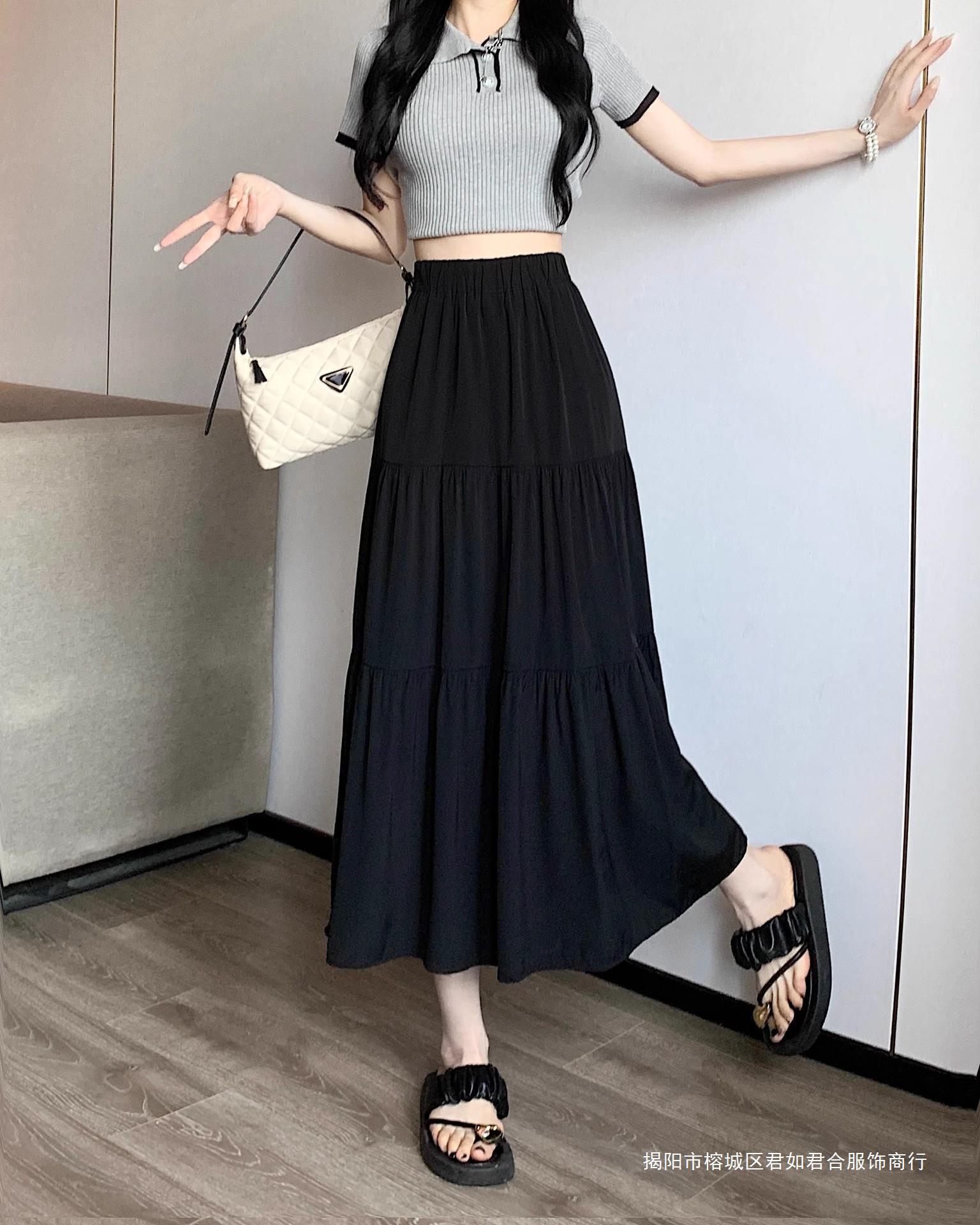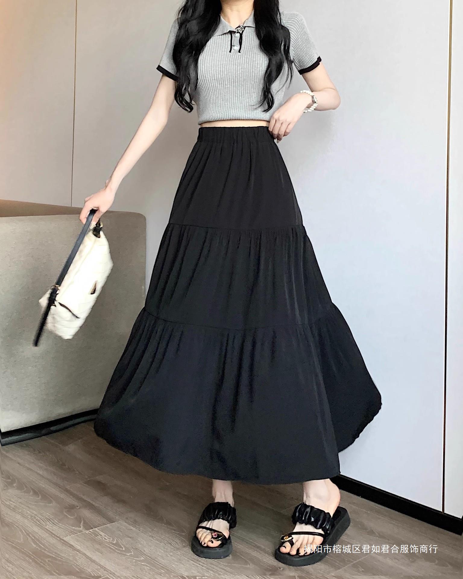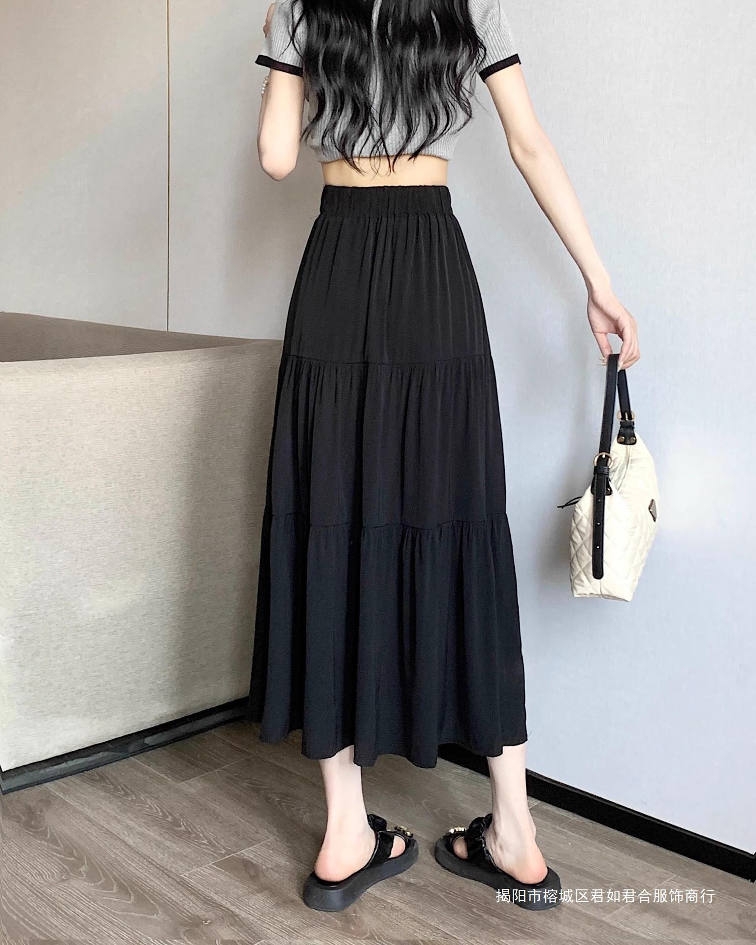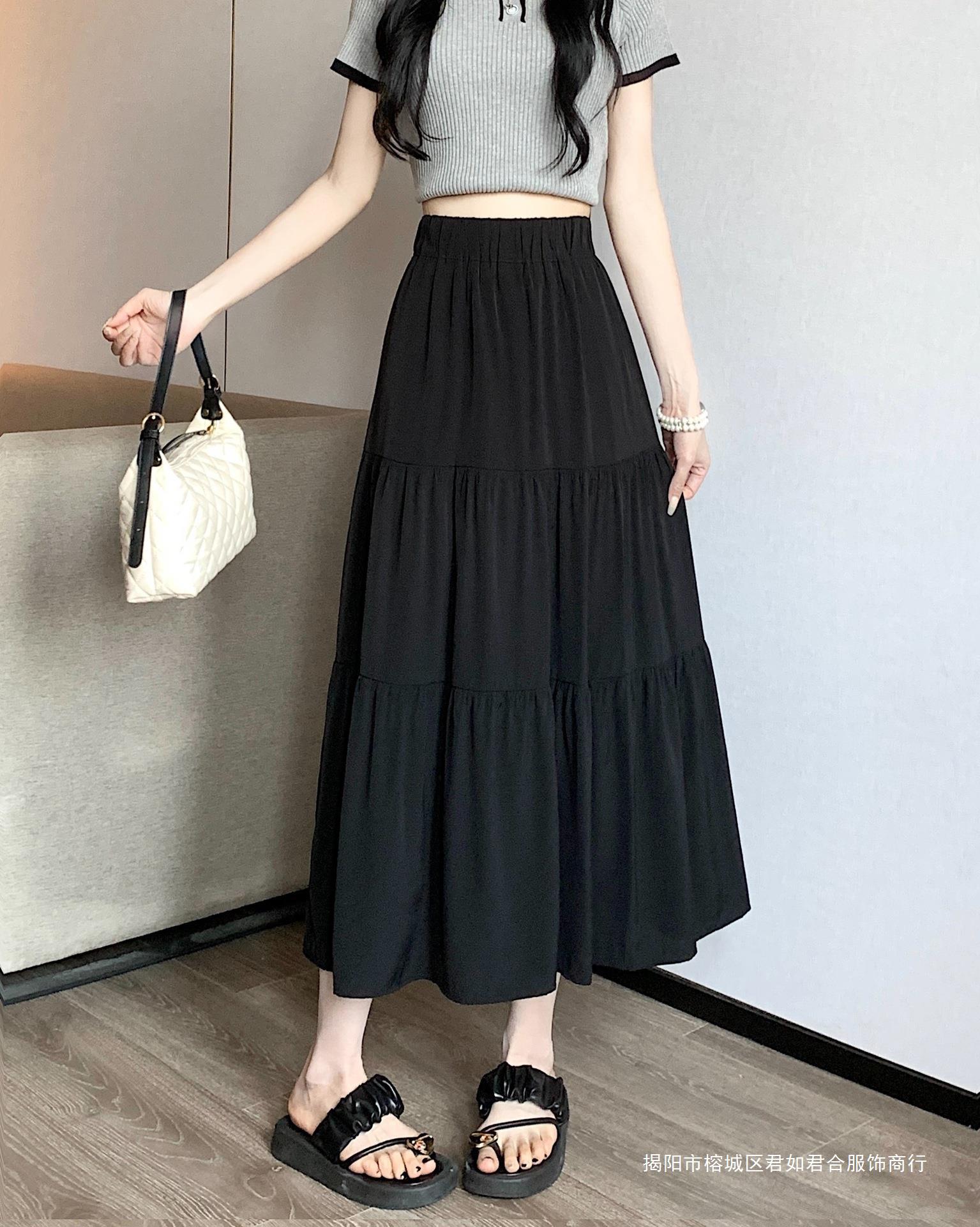 白い半身のスカートの女性の春夏2024の新型は腰を緩めて股を覆って痩せている中の長いタイプのケーキのスカートの傘のスカートのinsを現します。