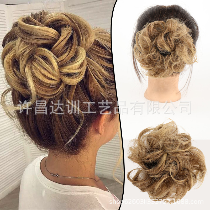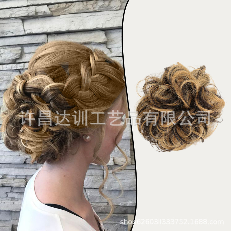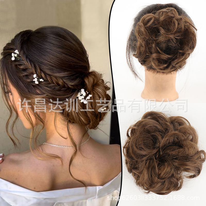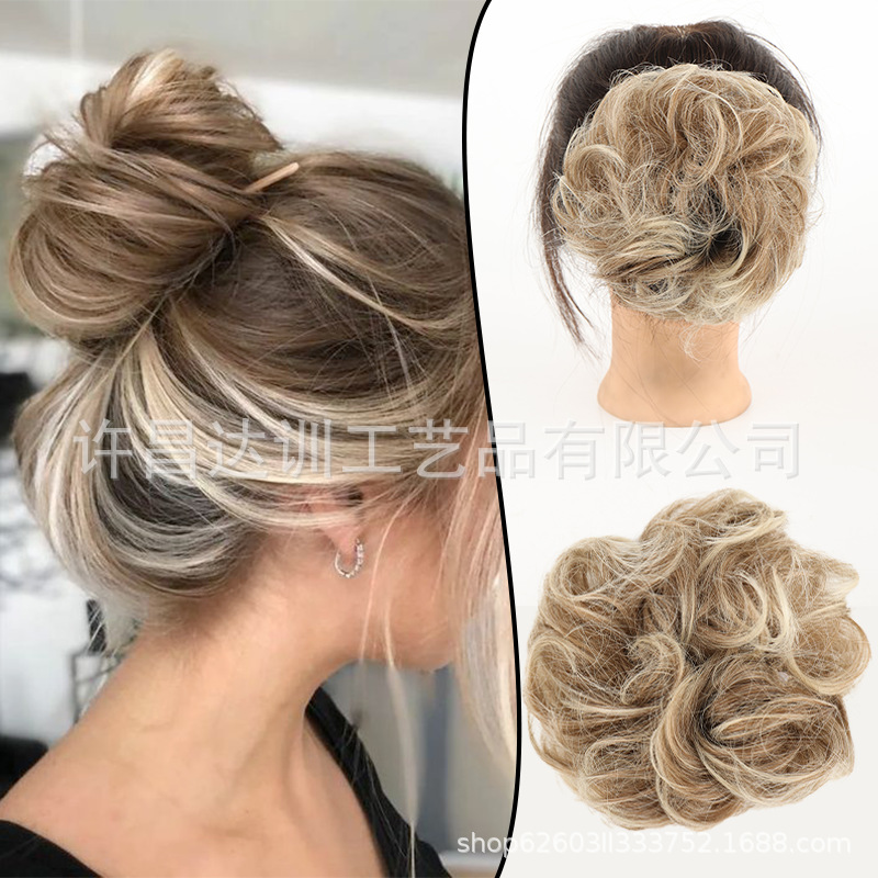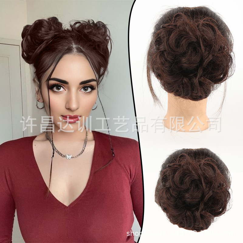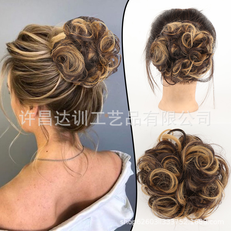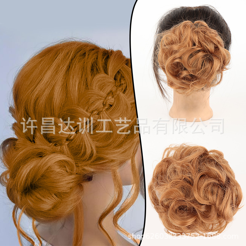 散らかった髪を巻いて、丸い髪をつかんで、ドーナツの髪をつないで、高温繊維かつらメーカーの卸売りをします。