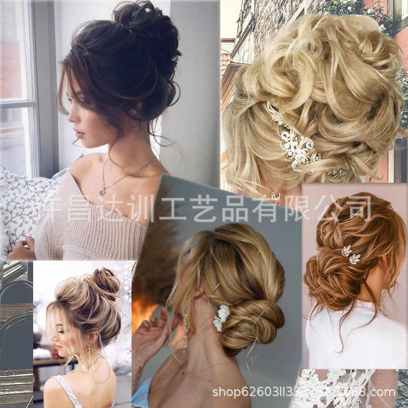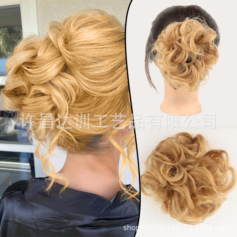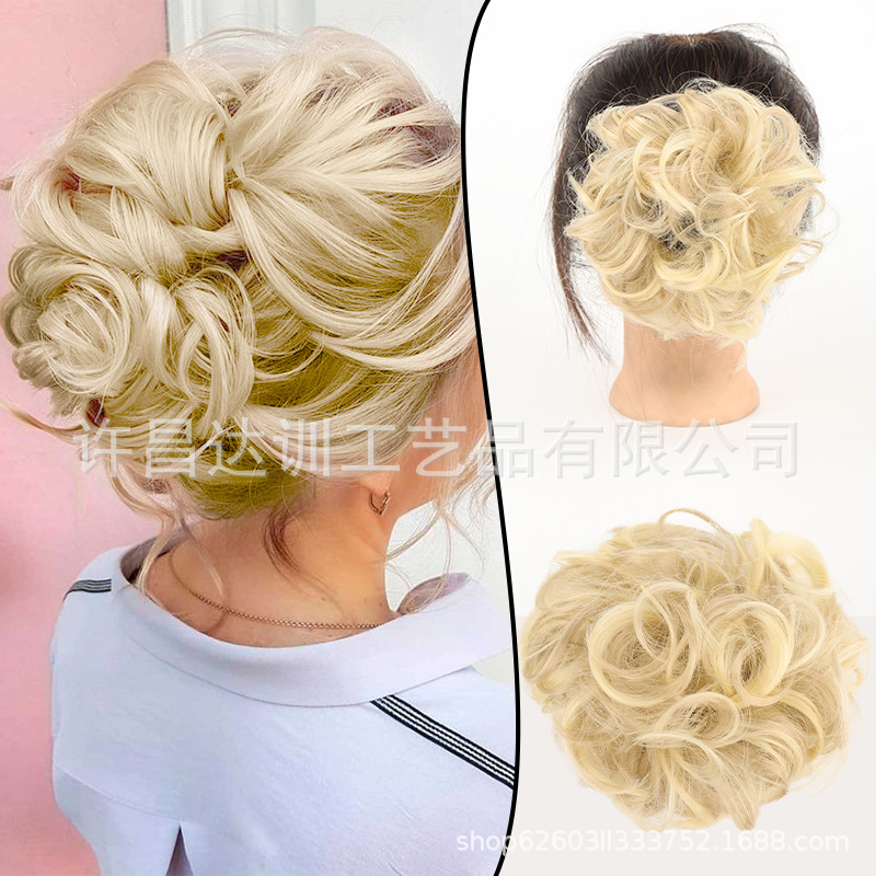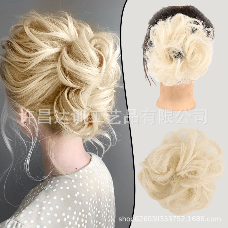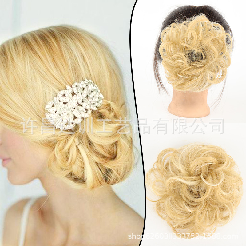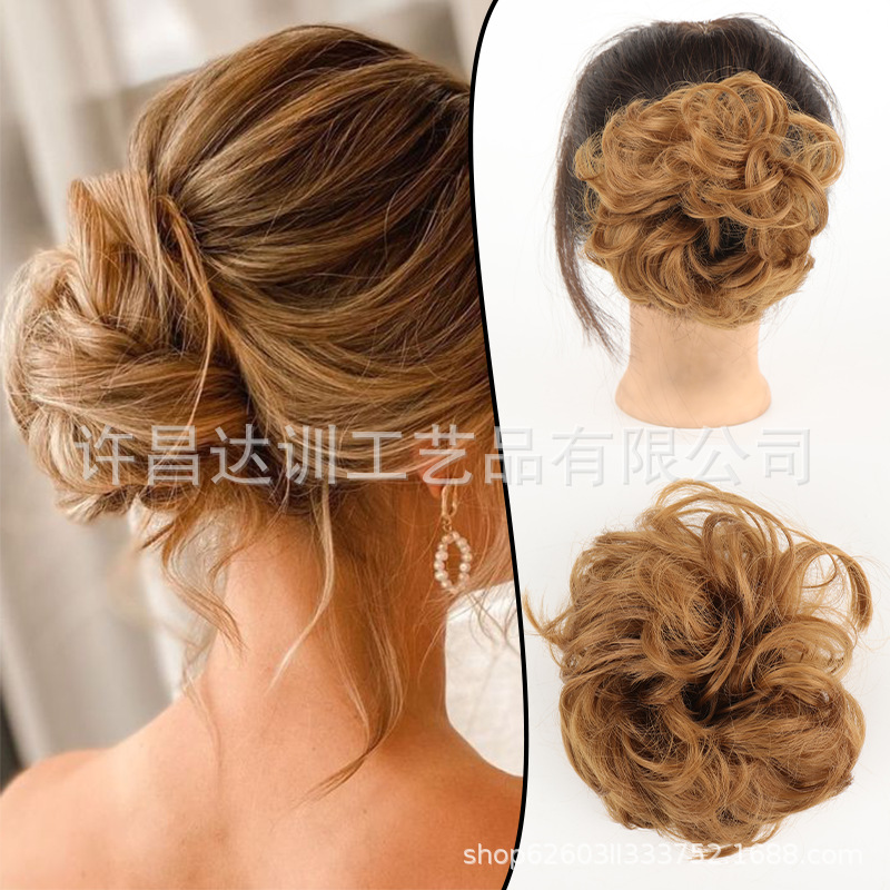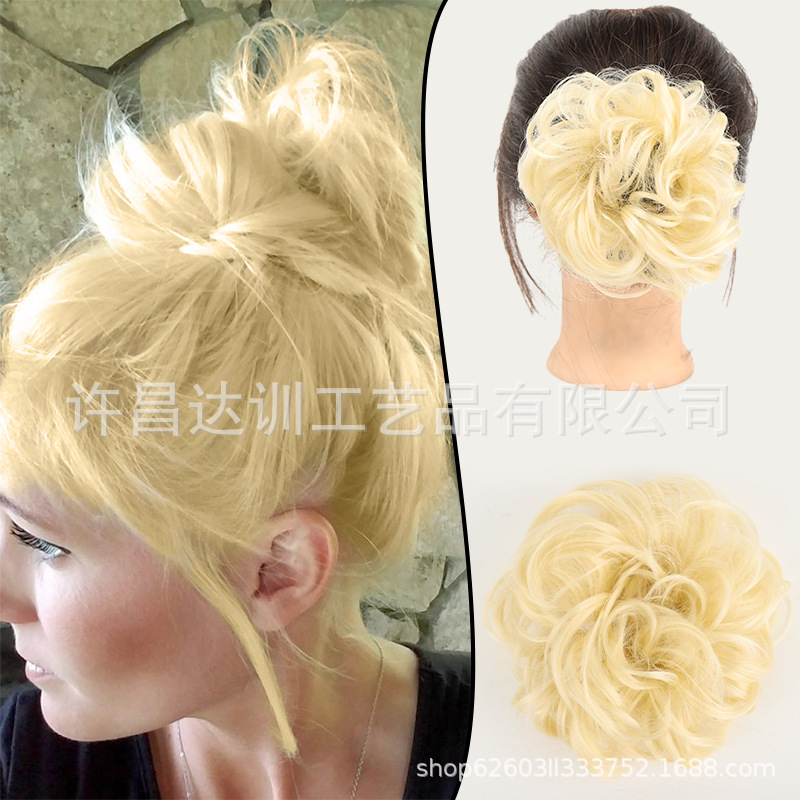 散らかった髪を巻いて、丸い髪をつかんで、ドーナツの髪をつないで、高温繊維かつらメーカーの卸売りをします。