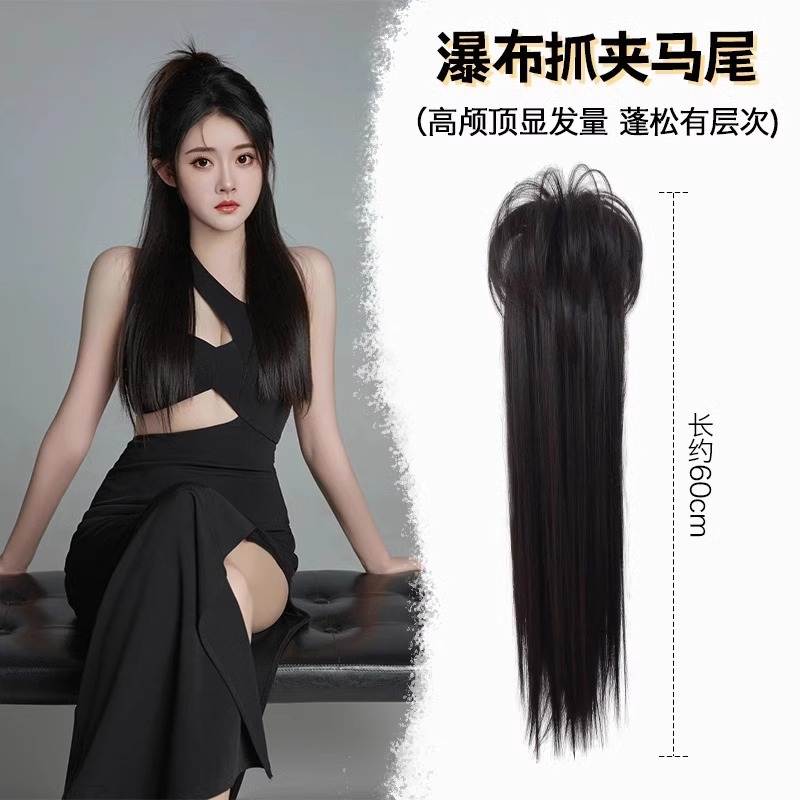 滝の高い馬尾はかつらの女性の視覚をつかんで高くなります。