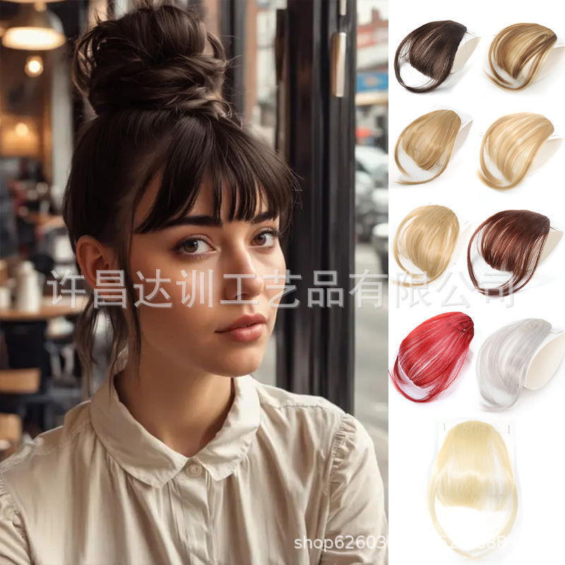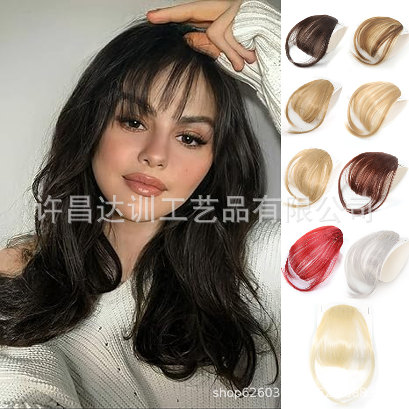 外国貿易用化繊エア前髪ウィッグ、夏用軽量つけ毛前髪、自然な額元隠し跡のつかない前髪