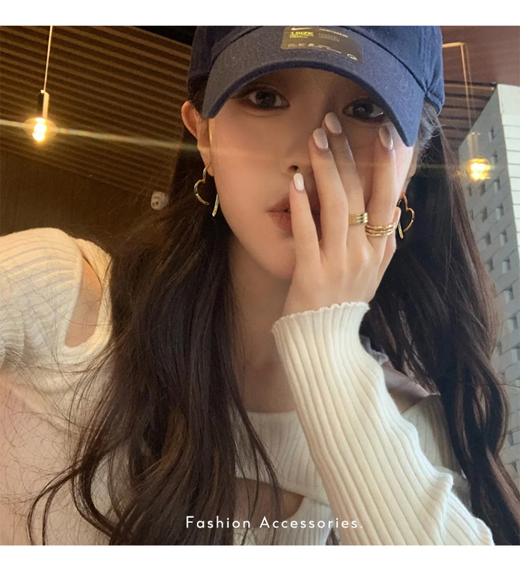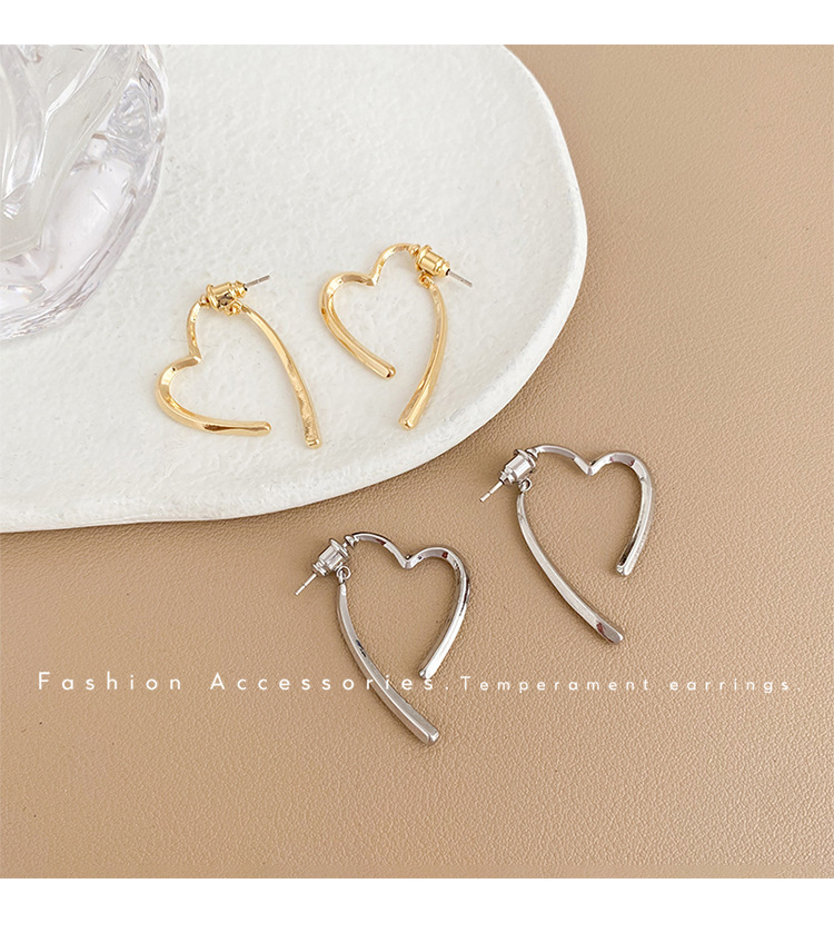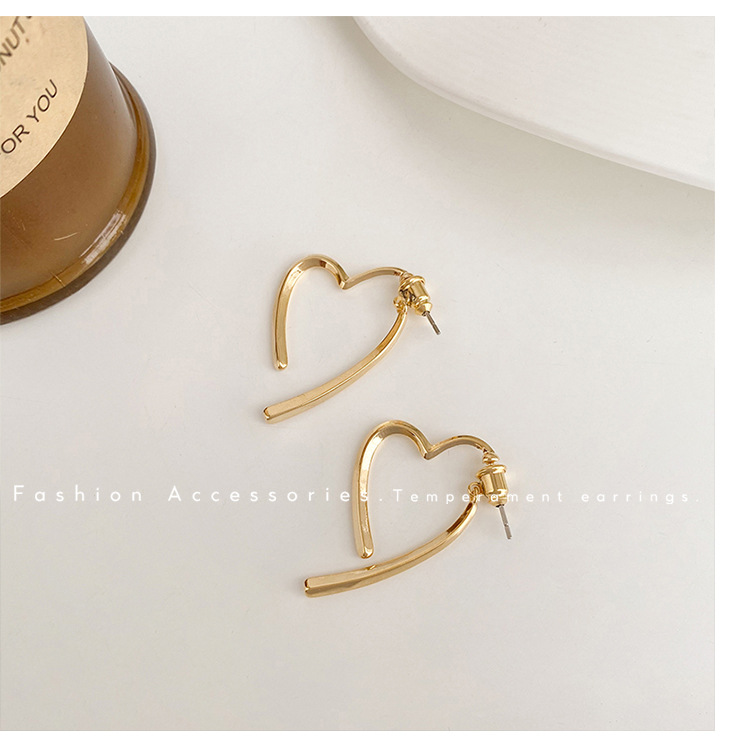 合金耳飾り金色の愛の耳ボタン気質ハート型イヤリング2024新ピアス小衆デザイン高級感