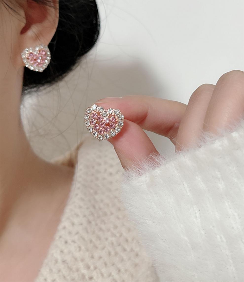 ピンクの愛のピアスは贅沢で高級感があります。