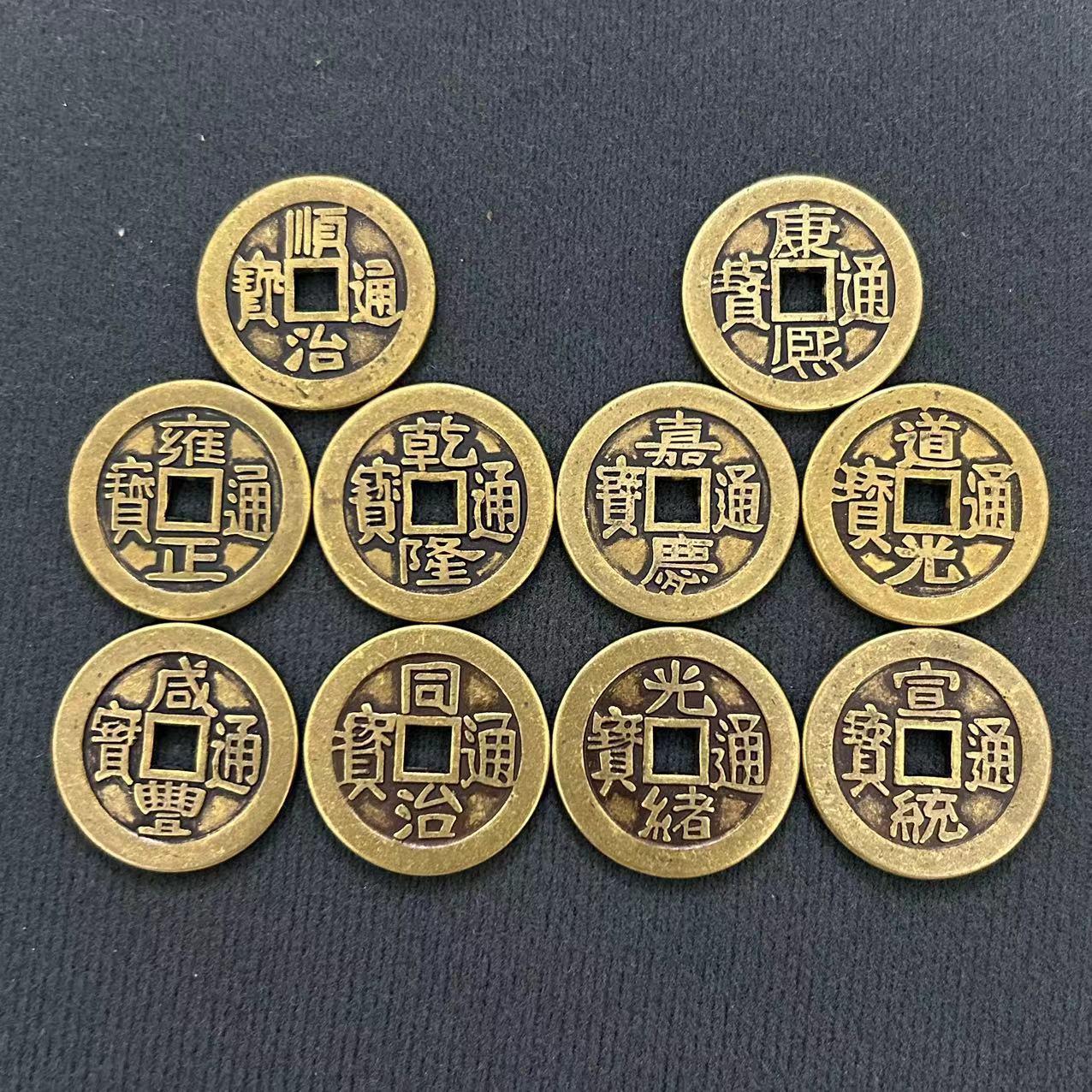 真鍮五帝銭順治康煕雍正乾隆嘉慶道光咸豊同治光緒宣統2.5cm