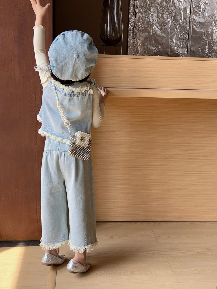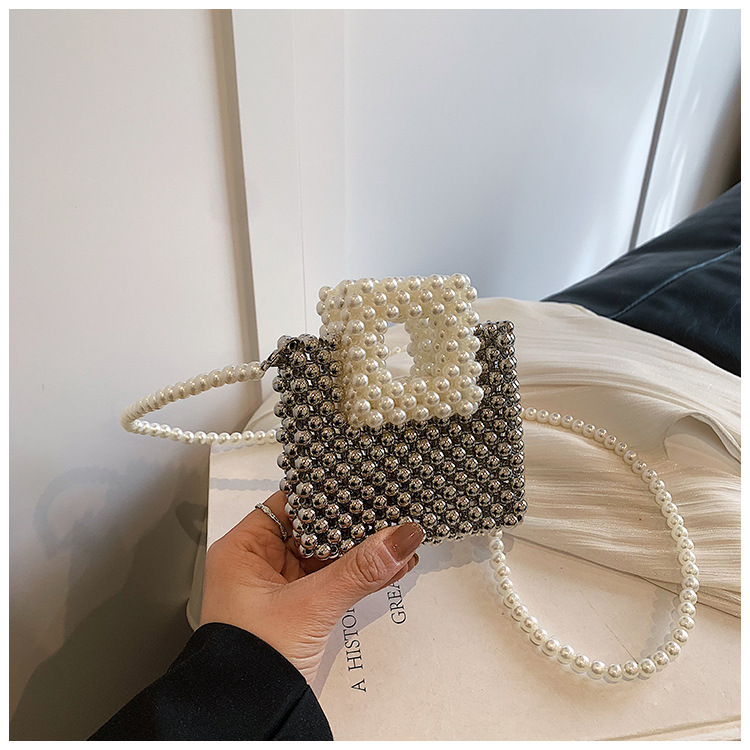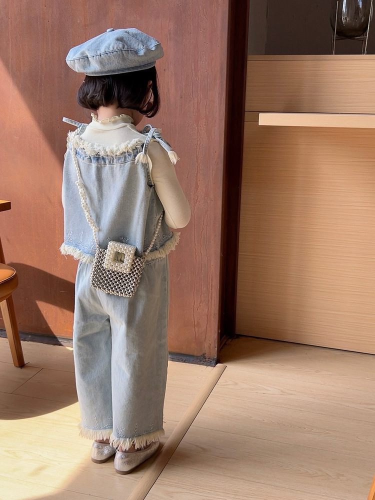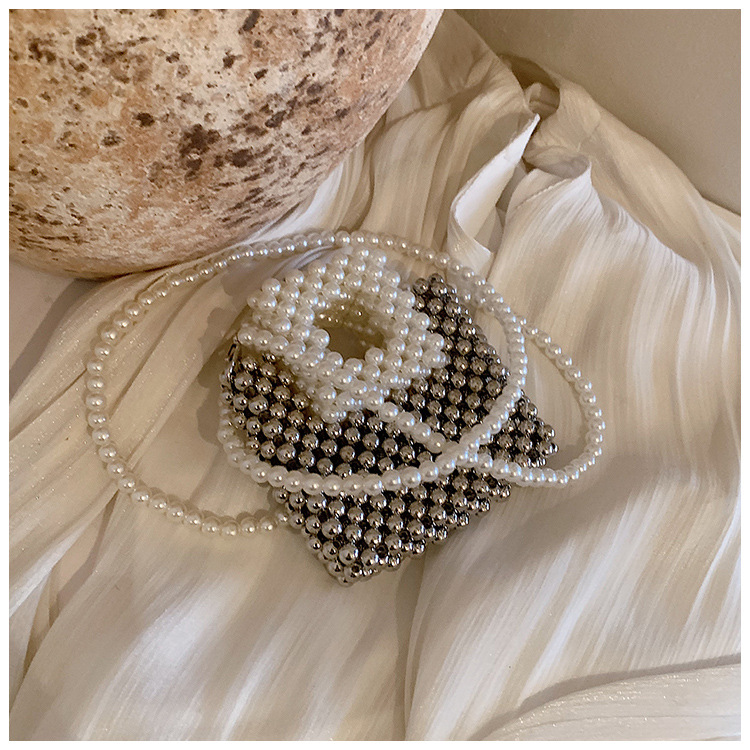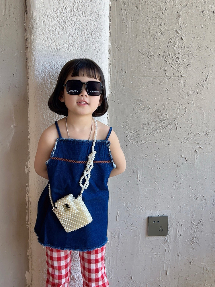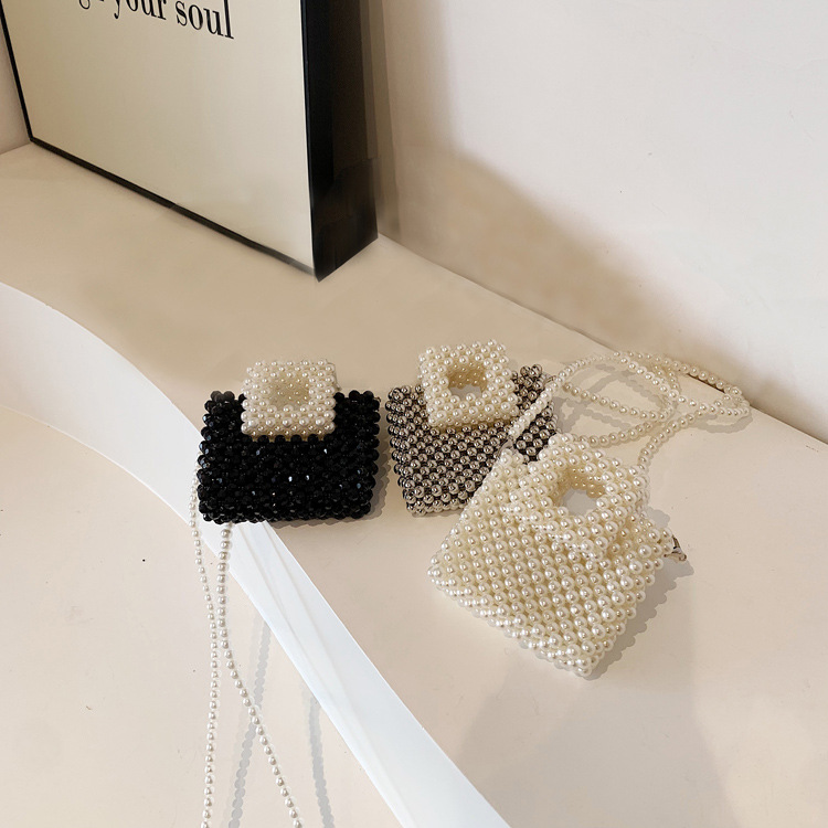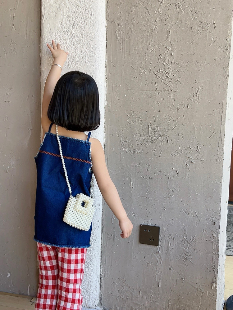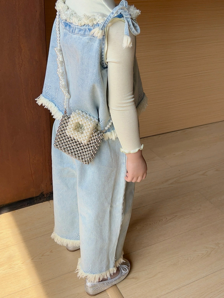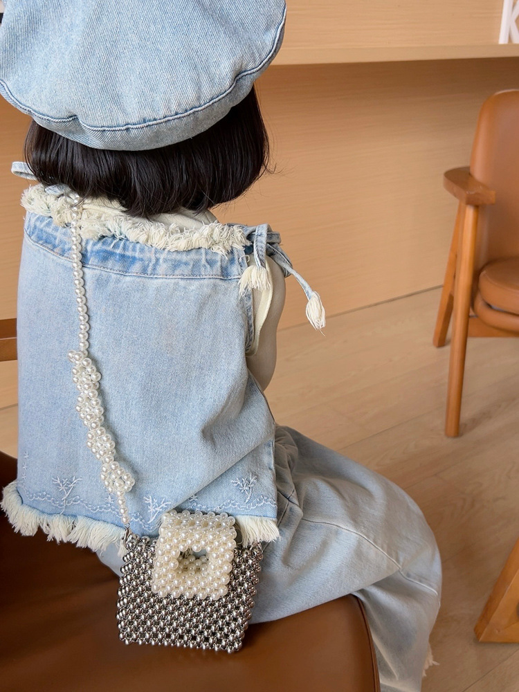 洋気王女児童真珠ハンドバッグ2024夏の新型外出百合女の子ビーズ斜め掛けバッグ