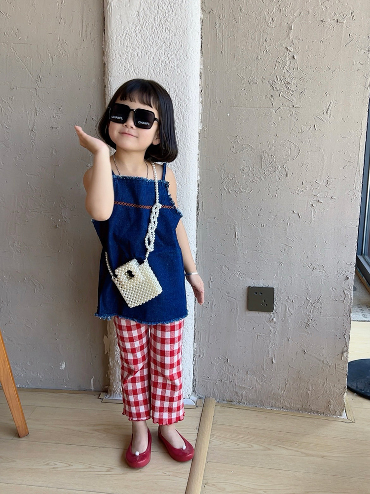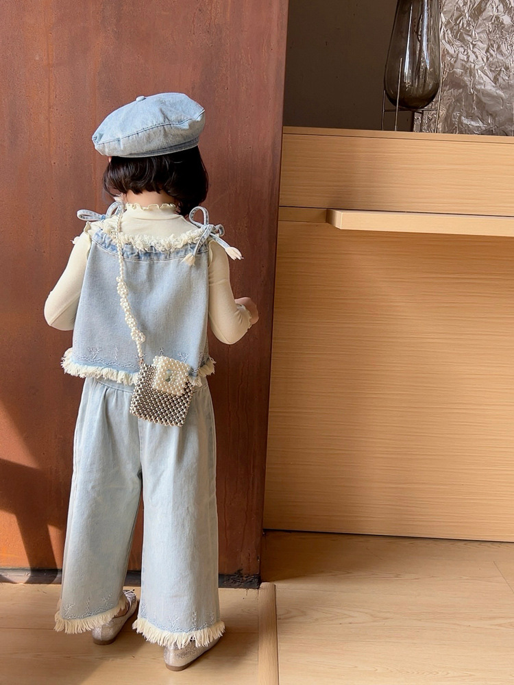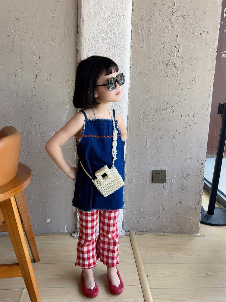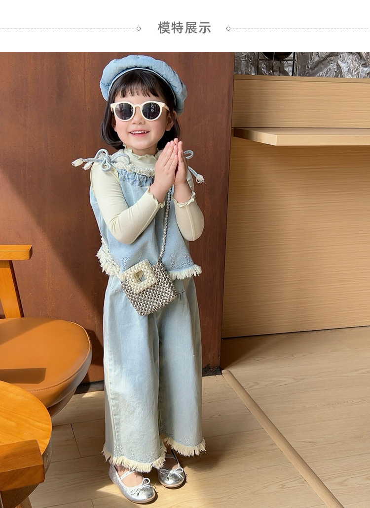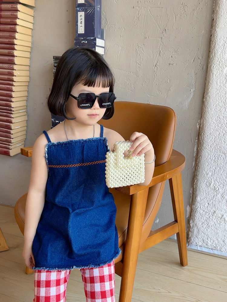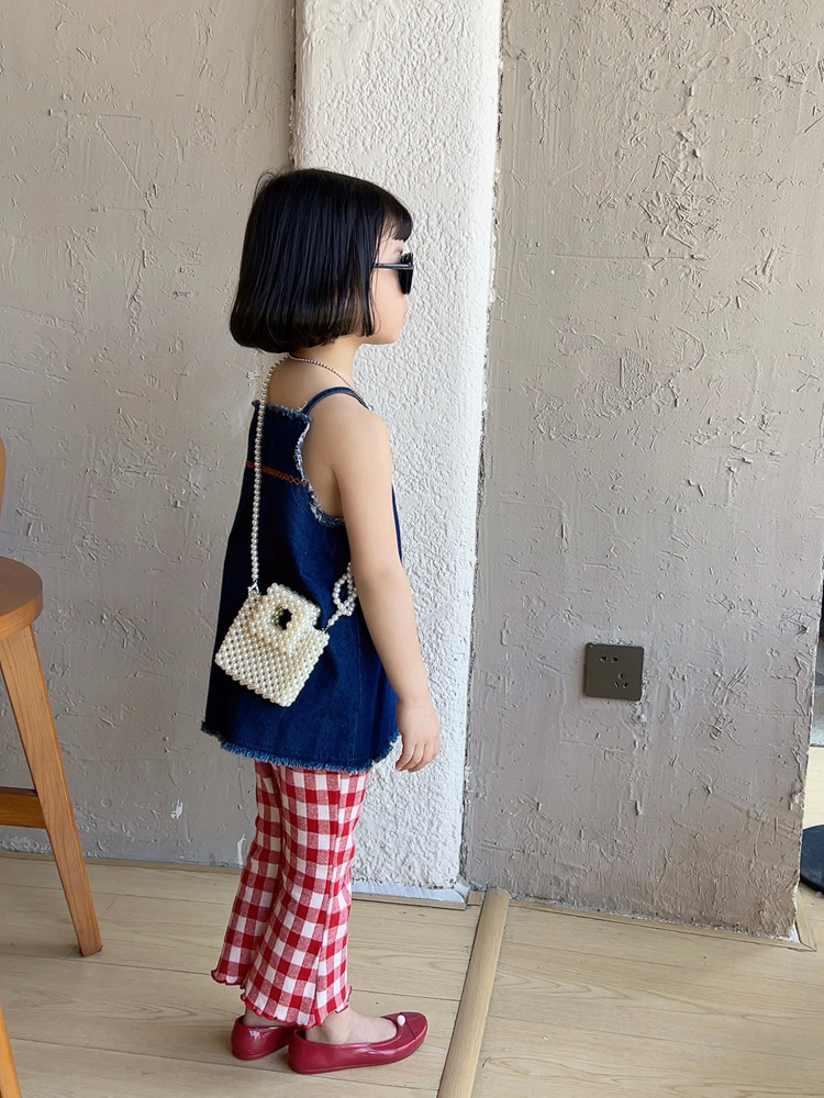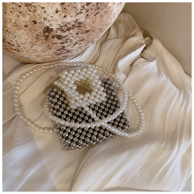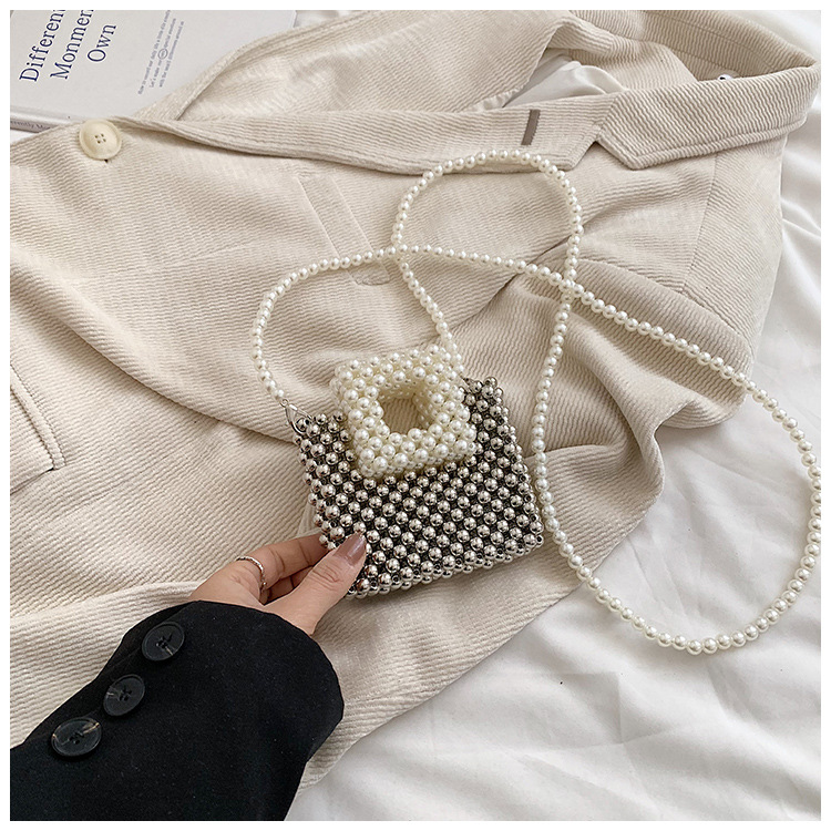 洋気王女児童真珠ハンドバッグ2024夏の新型外出百合女の子ビーズ斜め掛けバッグ