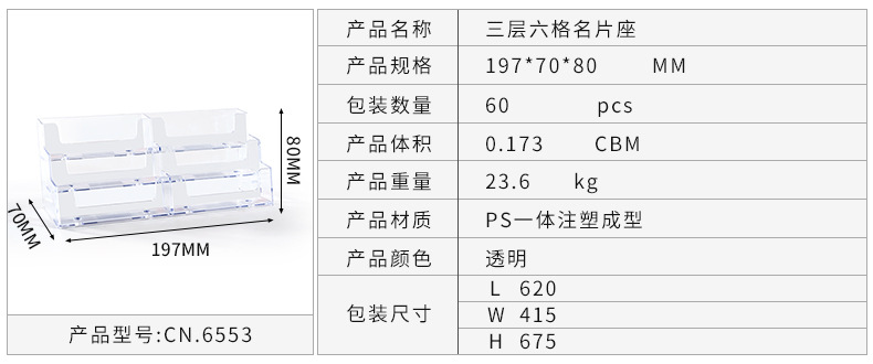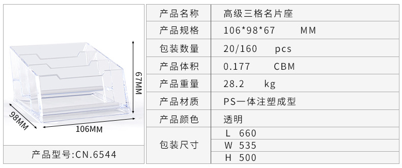 仕様 CN.6542 (厚手シングルスロット名刺ホルダー),CN.6543 (2コンパートメント名刺ホルダー),CN.6544 (3コンパートメント名刺ホルダー),CN.6545 (6コンパートメント名刺ホルダー),CN.6546 (薄型シングルスロット名刺ホルダー),CN.6547 (シングルフレーム名刺ホルダー),CN.6548 (シングルフレーム名刺ホルダー),CN.6549 (2コンパートメント名刺ホルダー),CN.6550 (3コンパートメント名刺ホルダー),CN.6551 (4 コンパートメント名刺ホルダー),CN.6552(2層4コンパートメント名刺ホルダー),CN.6553 (3層6コンパートメント名刺ホルダー),CN.6554(4層8コンパートメント名刺ホルダー)