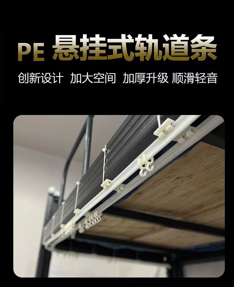 学生寮のベッドのカーテンの軌道は穴を開けないでレールを取り付けます。