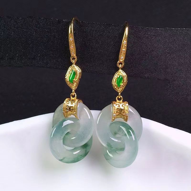 平安吉祥イヤリング、レトロな天然石象嵌ダブルリングイヤリング、エレガントで個性的なジュエリー、宝石幾何学模様