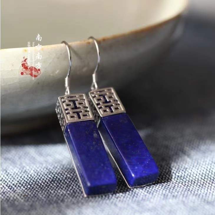 双喜耳フックアクセサリー手作り青金石復古泰銀女性モデル復古風民族結婚式気質イヤリング