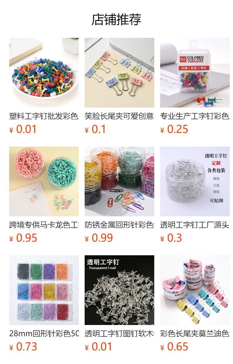 200枚装工字钉彩色塑料图钉马卡色莫兰迪色黑白色大红蓝绿大头钉